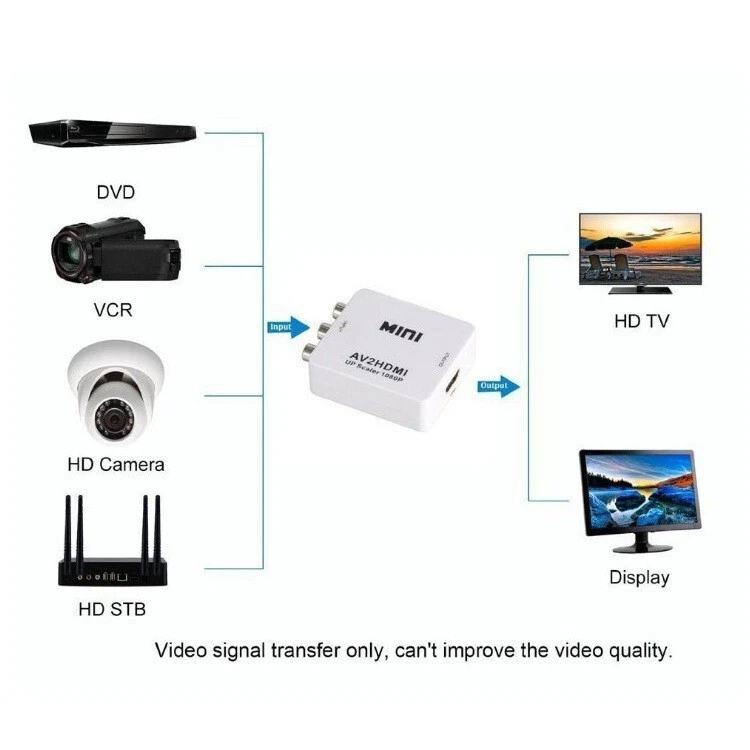 The RCA AV to HDMI HD Converter Composite CVBS Video Adapter is a versatile device designed to convert composite CVBS video to HDMI HD. It features a 1:1 connection split/duplication, a white color design, and compatibility with NES and SNES models. The adapter has a 20 cm cable length and a 12 AWG gauge, making it suitable for portable use. With a manufacturer warranty of 1 year, this RCA adapter ensures quality and reliability for your video conversion needs.