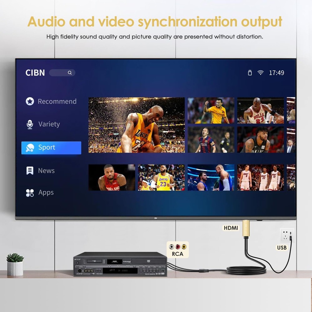 RCA to HDMI Converter for Smart TV - Composite AV to HDMI 1080P Aluminum Alloy Video Audio Adapter for VCR/DVD/VHS Player/Roku/PS2 Game Console - 6 Feet (Golden) Connect old AV devices to modern HDMI-equipped TV: This RCA to HDMI converter can convert analog RCA composite input to HDMI up to1080P output. Great for using older video players with smart TV, easily connected old-school VHS/DVD/VCR player to smart TV, you can watch old equipment sources and use old game systems on new TV that may not have RCA, which can bring back your childhood memories. Perfect for making old video peripherals useful again. All in one AV to HDMI Cable Adapter: Supplied with RCA male cable, HDMI cable, and USB power cable, features a built in RCA to HDMI converter chipset, no need to buy extra cable, Hassle Free and Save you money by eliminating the need for extra components. Great For Viewing VHS and DVDs from old analog Player to New Digital TV. Easy HDMI hook up for older AV devices: Easy to use, no need any drivers, just plug to play, Please remember to hook up the USB power cable to 5V power source to make it work, you can get it to work within minutes. Note: the Audio Video cable to HDMI Converter only support converts AV to HDMI, can't converts HDMI to AV. 1080P HDMI Quality Supported: The av to hdmi converter has an built in authentic HD chip that supports advanced signal processing with great precision, colors, resolutions scale up to 1080P HDMI. Wide Compatibility: This composite to hdmi adapter is widely applied to use your old DVD, VCR, VHS, Android TV box, PS2, PS3 or game system with RCA input to connect to your new HDTV or HDMI only monitor, this RCA to HDMI converter is the right choice. If you want to use your DVD, VCR, VHS, Android TV box, or game system with RCA output to connect to your new HDTV or HDMI, this RCA to HDMI converter is what you need. RCA to HDMI Converter Kit: Contain all necessary cables you need, such as Male RCA cable, HDMI cable, micro USB Power cable and built-in intelligent chip, no need to buy extra cable, more convenient to use. Features: Converter RCA signals into HDMI signals so you can watch your video on your HD Smart TV. No need to buy extra RCA cable and HDMI cable. No driver need,just plug and play. Helped to play your video consoles with your newer TV,then you got back to live your memories again. Allows you to view your favorite VHS tapes and preserve memories. It can bring back your family memories, relive your childhood in seconds, and it’s also a ideal choice for those who still love playing older game systems. Makes it easy to get old tech to work with new tech without a whole lot of fuss and costs. Note: This converter is not bidirectional. Just a one-way connector only, convert signal from RCA to HDMI. It can not convert HDMI to RCA. Shipping We offer FREE shipping on all orders! We ship within Three business days of payment, usually sooner. We use a selection of shipping services such as UPS, FedEx, USPS etc. We only ship to the lower 48 states, no APO/FPO addresses or PO Boxes allowed. Local pickups and combined shipping options are not provided at this time. Return You can return a product for up to 30 days from the date you purchased it. Any product you return must be in the same condition you received it and in the original packaging. Please keep the receipt. Feedback Customer satisfaction is very important to us. If you have any problem with your order, please contact us and we will do our best to make you satisfied. Contact Us If you have any queries, please contact us via ebay. We usually respond within 24 hours on weekdays. Please visit our eBay store to check out other items for sale! Thank you for shopping at our store.