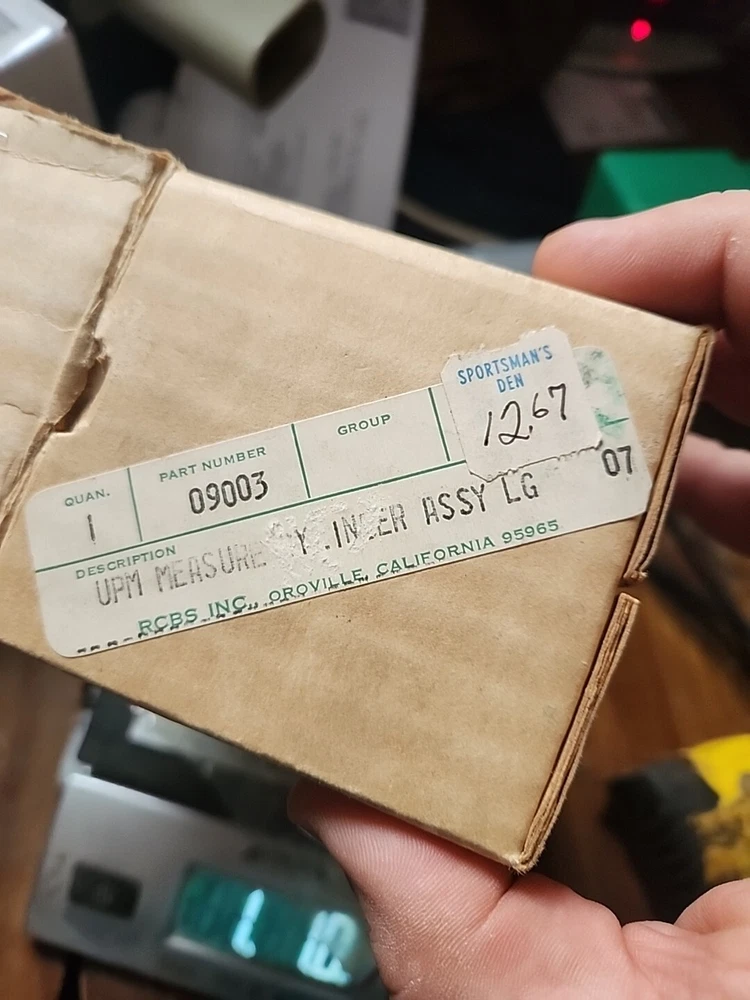The RCBS 09003 UPM MESSAGE INNER ASSY LARGE is a reloading press accessory designed for rifle ammunition. Specifically, it is an inner assembly component for the RCBS Universal Power Measure (UPM) system. This product is manufactured by RCBS, a well-known brand in the reloading equipment industry, known for its quality and reliability in providing tools for reloaders to create their own ammunition. Had to open box to verify contents. Original Box pieces in plastic