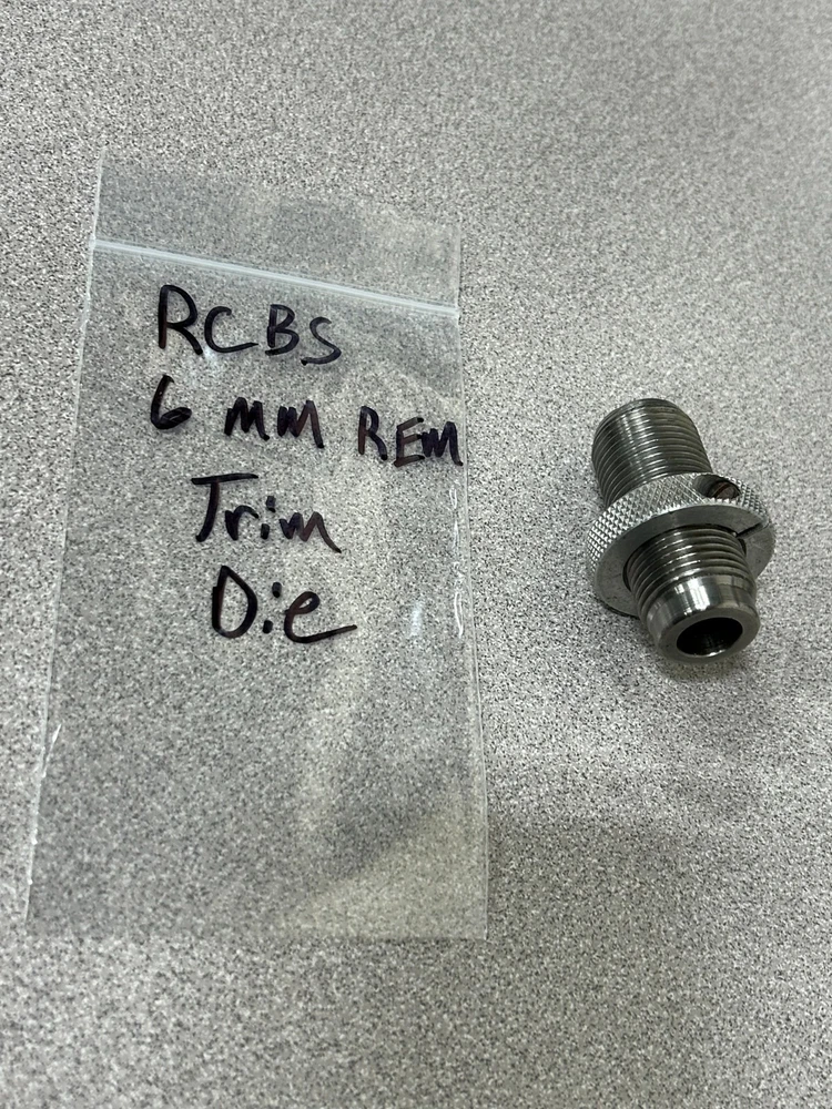 This bid is for one RCBS Trim Die. It will load 6 mm Remington rounds. It is used, but is in excellent working condition. SHOOT IT AGAIN SPORTS Info; Selling any reloading equipment or firearm related items? Message Me. About Us; Shoot It Again Sports is a family run business that tries to get quality reloading equipment and firearm supplies to the general public at a reduced rate. We have over thirty years’ experience in the firearms business. We will be adding more items every week, so check back when you can. Used Items; most of our items are used, but are in excellent working condition. If we miss something and the item does not work, we will refund your money and shipping cost after the item has been returned to us. Please ask all the questions you want and check the pictures out before you order from us. If you see a problem with one of our listings, please let us know we will get it changed right away. Payment; we use PayPal for all of our items. Shipping; we use USPS priority and first-class mail for all of our items sold, large heavy Items ship FEDEX. Thank you for your interest in Shoot It Again Sports, and our Items.