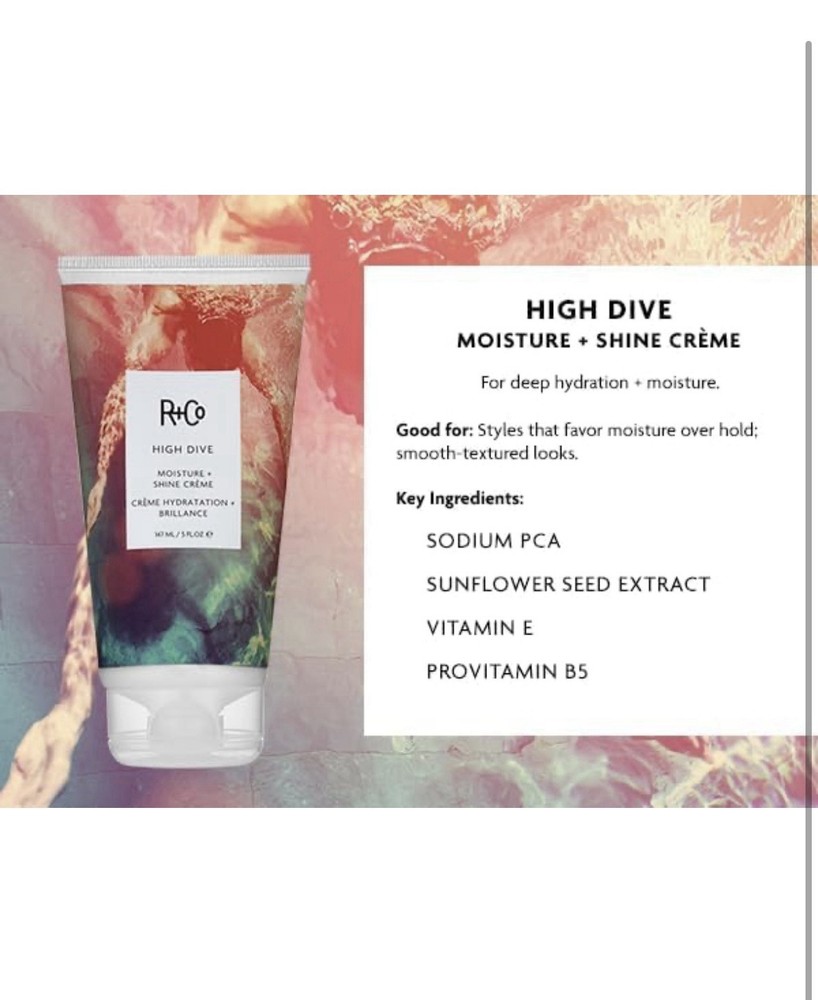 I absolutely love R+co high dive moisturizer! The scent is so incredible that I wish it came in perfume form! It is so moisturizing! By far one of the best things to keep any frizziness to a minimum during those humid summer months. Highly recommend and the seller shipped this very quickly and product arrived in pristine condition. Thanks!