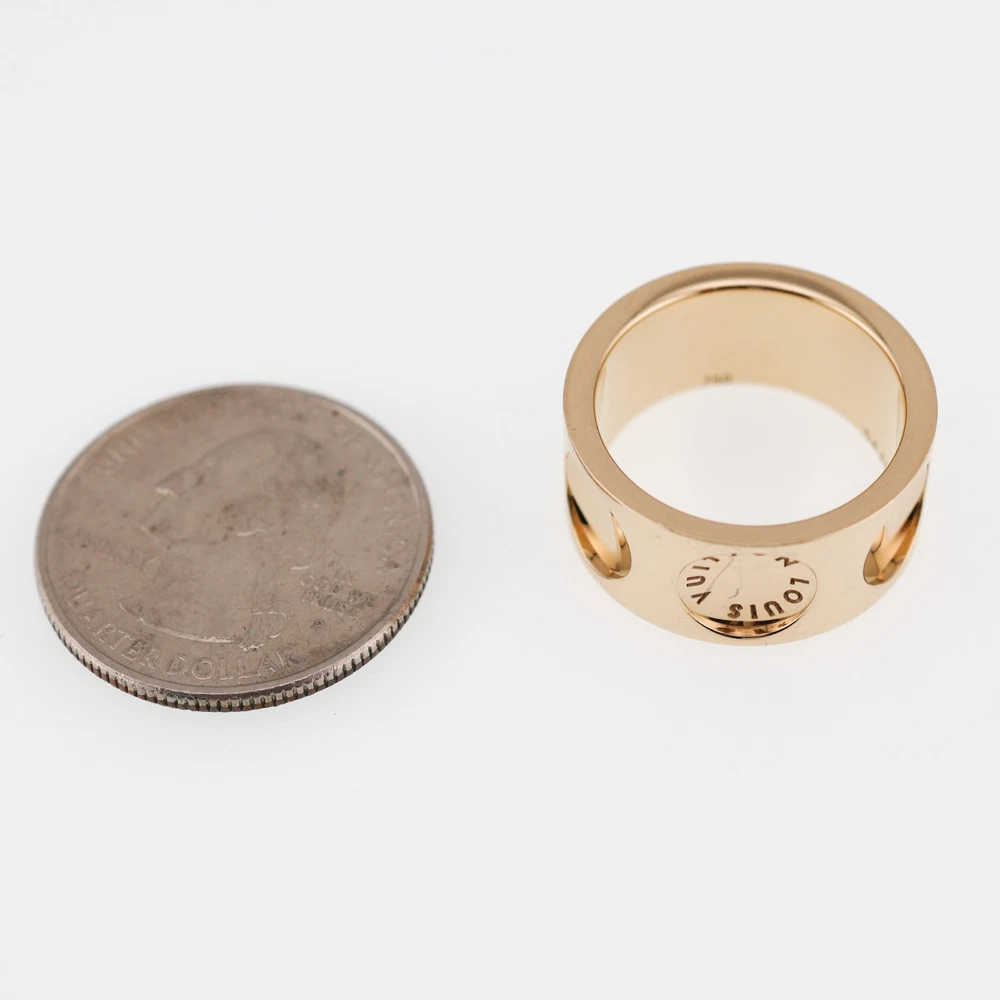 Sizable: No Customized: No Metal Purity: 18k Color: Yellow Type: Ring Main Stone: No Stone Wholesale: No Style: Band Materials sourced from: France Handmade: No Base Metal: Gold Brand: Louis Vuitton Antique: No Vintage: No Personalize: No Metal: Yellow Gold Country of Origin: France Signed: Yes Ring Size: 7