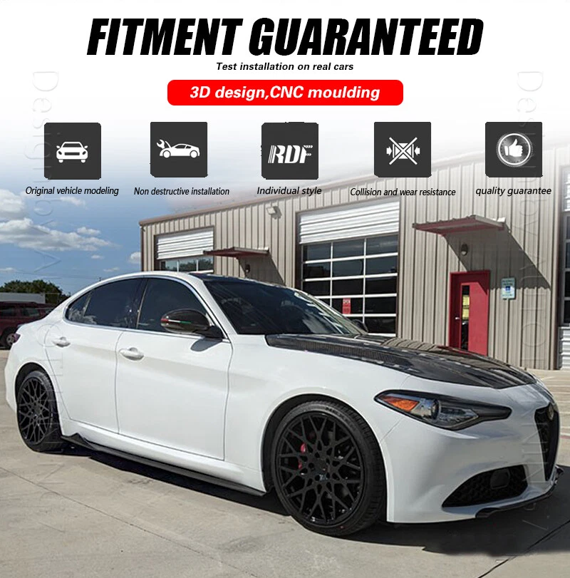 Feature: 1.Fit For Alfa Romeo Giulia 2017-2024 2. Functions: Create a new iconic look, maintain vehicle body's stability. 3. Installation: Precision holes, free self -tapping screws included in the package for easy installation, perfect fitment, no modification 4. Material: REAL Carbon fiber 5. Surface finish: Clear 3X3 twill weave carbon, shining surface 6. Processing: CNC molding, test installation on real cars, fitment guaranteed. 7.Packing:Multiple layers protected export carton, shockproof REAL CARBON Side Skirts Extension Lip Panel Kit For Alfa Romeo Giulia 2017-2020 Feature: 1.Fit For Alfa Romeo Giulia 2017-2024 2. Functions: Create a new iconic look, maintain vehicle body's stability. 3. Installation: Precision holes, free self -tapping screws included in the package for easy installation, perfect fitment, no modification 4. Material: REAL Carbon fiber 5. Surface finish: Clear 3X3 twill weave carbon, shining surface 6. Processing: CNC molding, test installation on real cars, fitment guaranteed. 7.Packing:Multiple layers protected export carton, shockproof Specification: Color:Gloss Black Material:Carbon Fiber Process: Vacuum molding Pattern:3X3 twill weaven Packaging:Carton box Installation:Free glue tape & screws included Package including: 2PCS Car side skirts Delivery details Payment and TAX Warranty Policy Return Policy Contact us Delivery details NOTE: The shipping fee is only for the mainland of each country, it does not include the overseas territories, such as Virgin Islands (U.S.) , Puerto Rico, Hawaii , French Reunion Island, etc. But on ebay, when buyers from Puerto Rico and overseas territories , the shipping fee is equal to United States, it is NOT correct,. please contact us for correct shipping fee, or we will cancel the order. Sorry for the inconvenience, and thanks for your cooperation. 1. If you want to upgrade the shipping, please contact us before making payment, we will revise the shipping fee. 2. We will ship according to your Ebay address. Please make sure it is correct and include phone number for delivery. If you want to know the exact shipping time , please contact us . Payment and TAX 1.We accept Multiple Payment Methods Available: Credit Card, Debit Card, Gift Card, Apple Pay, Goggle Pay, PayPal and PayPal Cred. 2.Please leave note for your special request (e.g. Colors or Size) in ebay note when you pay the order. 3.Your must complete the payment within 7 days or Ebay will automatically open unpaid item case For US Buyer:The invoice value of each item is less than 800USD ,so you no need to pay any tariff . NON-US Buyer Note: Most countries are tax free based on our invoices, if tax is required, which will be buyer's responsibility. Warranty Policy We Warranty Our Product Within the Limited Warranty Policy Specified on Ebay. Please Email us if ou have any question regarding the warranty policy on a specific item. Most of the items are Aftermarket Parts and they are intended for off-road usage only, therefore no installation instruction will be included, Professional installation are Highly Recommended. We are not responsible for any damages to the item or the vehicle that occur during the installation of the item.Also, Please Make Sure Proper Installation is Performed as we are not responsible for item being missing or flew off after the installation. if you don't think the item can stay on the car properly, please do not attempt to drive the car with it and please check with professional shops/mechanics or contact us for assistance. Return Policy We Accept Returns Within the Return Period On Ebay. Return Authorization/Return Approval is Required For Every Return. So If you Wish to Make a Return On Your Purchase. Please Contact us Before You Send The item back For any damages occured to the item upon arrival, Please notify us within 5 days of the delivery so we can take proper action to fix the issue. So Please Kindly inspect and check the item condition upon arrival.For Any other Return Inquries, You can contact us within the return period to obtain return authorization/return approval. In case of return, the merchandise needs to be returned in original condition with origi- nal packaging in order to be eligible for an exchange or a refund. Items must be not opened in their original package. Any mark of installation, mounting, cutting, scratch or using will not be allowed. Contact us 1.We are trying our best to explain all details of the products here! If you have any question, please feel free to contact us by Ebay message, and We will get back to you within 24-48 hours. 2.Customer satisfaction is our NO.1 priority. If you are not happy with the item that you purchase, please contact us first. We will try our best to solve the problem with you.Please leave us a positive feedback if you receive the item.Please do not leave negative or neutral feedback without any contact.If you haven't received item in 30 days, please contact us and we will arrange refund.We appreciate your business.Happy Bidding & Have a nice day! 3.Working hours: From 8 a.m. to 6 p.m. from Monday to Friday. From 8 a.m. to 12 a.m. on Saturday morning Holiday/Rest time: Saturday afternoon and Sunday