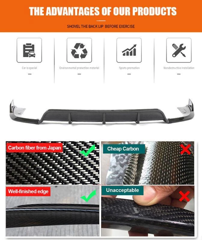 Fitment: Fit for BMW X5 G05 M-PORT 2019 2020 2021 2022 Specifications: Product Name: Rear Bumper Lip Material: Carbon Fiber Package Size: 130*41*20cm Package Weight: 4.5kg Features: • Made of High Quality Lightweight Carbon Fiber. • Improve the aerodynamic characteristics by enhancing the transition between the high-speed airflow below the vehicle and the free airflow in the surrounding atmosphere. • Provide space for the airflow under the vehicle to decelerate and expand, thereby providing pressure recovery by providing a degree of "wake fill" or more accurately. • Does not cause excessive airflow separation and resistance and keep driving safety. • Sport style rear diffuser, perfect for decoration, increase both road safety and racing style. Carbon Fiber Rear Bumper Lip FOR BMW The Rear Bumper Lip is one of the simplest mods you can do to the exterior of your car that will give your car that completely different look. Not only are spoilers meant for great looks, they also help Prevent the rear of the car from scratching. Fitment: Fit for BMW X5 G05 M-PORT 2019 2020 2021 2022 Specifications: Product Name: Rear Bumper Lip Material: Carbon Fiber Package Size: 130*41*20cm Package Weight: 4.5kg Features: • Made of High Quality Lightweight Carbon Fiber. • Improve the aerodynamic characteristics by enhancing the transition between the high-speed airflow below the vehicle and the free airflow in the surrounding atmosphere. • Provide space for the airflow under the vehicle to decelerate and expand, thereby providing pressure recovery by providing a degree of "wake fill" or more accurately. • Does not cause excessive airflow separation and resistance and keep driving safety. • Sport style rear diffuser, perfect for decoration, increase both road safety and racing style. Package included: • Car Rear Lip Bumper Body Kits • Mounting Accessories Delivery details Payment and TAX Return Policy About us Contact us Delivery details NOTE: The shipping fee is only for the mainland of each country, it does not include the overseas territories, such as Virgin Islands (U.S.) , Puerto Rico, Hawaii , French Reunion Island, etc. But on ebay, when buyers from Puerto Rico and overseas territories , the shipping fee is equal to United States, it is NOT correct,. please contact us for correct shipping fee, or we will cancel the order. Sorry for the inconvenience, and thanks for your cooperation. 1. Item will be shipped in 10 days, most within 2 days.usually it takes 7-30 days in transit to most countries. 2. If you want to upgrade the shipping, please contact us before making payment, we will revise the shipping fee. 3. We will ship according to your Ebay address. Please make sure it is correct and include phone number for delivery. If you have any questions , please contact us, we would do our best to serve you solve the problem. Payment and TAX 1.We accept Multiple Payment Methods Available: Credit Card, Debit Card, Gift Card, Apple Pay, Goggle Pay, PayPal and PayPal Cred. 2.Please leave note for your special request (e.g. Colors or Size) in ebay note when you pay the order. 3.Your must complete the payment within 7 days or Ebay will automatically open unpaid item case For US Buyer:The invoice value of each item is less than 800USD ,so you no need to pay any tariff . NON-US Buyer Note: Most countries are tax free based on our invoices, if tax is required, which will be buyer's responsibility. Return Policy 1.Customer satisfaction is our top goal. We believe our items are so outstanding. All products are quality checked. They are new and in good condition when shipped to our customers. We are convinced you will be happy with your Purchase. 2.If product is defective or damage upon arrival, or wrong product shipped, please contact us immediately. Returns accepted within 30 days of delivery date and item must be in original new condition, not worn or altered in any way with attached tags & wrap. Otherwise deal is final. Return shipping must be paid by buyer. Please always contact us to resolve any problems, we will do our best to satisfy you. Thanks very much. About us Who We Are? Our company is one of the earliest and leading auto parts manufacturer in China,established in 2002. We had more than 15 years of experience in overseas business. Powerful professional factory to ensure to provide best quality Products.We are specilized in designing,developing and producing carbon fiber,PU,FRP car body parts, and interior and exterior trims for Germany & American & luxury super cars. What Do We Have? Our company offers various kinds of high quality aftermarket auto parts including exterior parts and interior parts, and sold to more than 60 countries, including North America, Europe, Australia, southeast Asia, Middle East, South Africa, etc Contact us 1.We are trying our best to explain all details of the products here! If you have any question, please feel free to contact us by Ebay message, and We will get back to you within 24-48 hours. 2.Customer satisfaction is our NO.1 priority. If you are not happy with the item that you purchase, please contact us first. We will try our best to solve the problem with you.Please leave us a positive feedback if you receive the item.Please do not leave negative or neutral feedback without any contact.If you haven't received item in 30 days, please contact us and we will arrange refund.We appreciate your business.Happy Bidding & Have a nice day! 3.Working hours: From 8 a.m. to 6 p.m. from Monday to Friday. From 8 a.m. to 12 a.m. on Saturday morning Holiday/Rest time: Saturday afternoon and Sunday