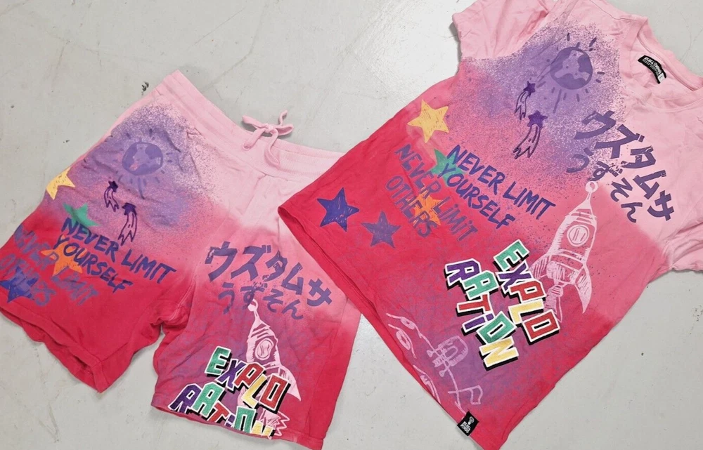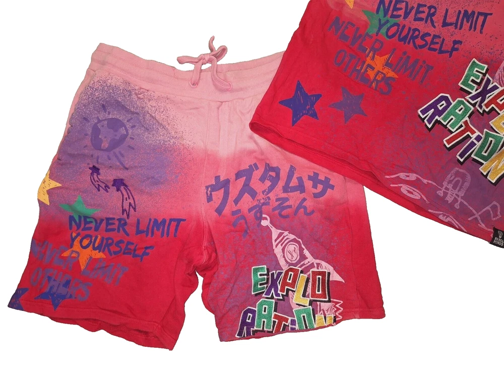EXACTLY AS SEEN Size L Stretchy, Cotton Blend Shorts have Elastic NOT New but in FINE GOOD Decent Clean Wear Upon Arrival Cond Shirt is Approx 36-38 Around Short Sleeve COOL design Way Trendy Paid OVER $65 for the Outfit, EXCELLENT Deal here WE HAVE MORE CLOTHES,Pleaseee LOOK BUNDLE N SAVE!!! CHECK OUT OUR HUGE SELECTION OF ITEMS---We have SOOOO Much More Pleaseeeee---> ASK ANY QUESTIONS BEFORE PURCHASE! We don't Accept Returns. NO smoke smells, NO animal hair *Unless noted in description Need more pics? Just ask. Got Questions, Please ask before purchase!