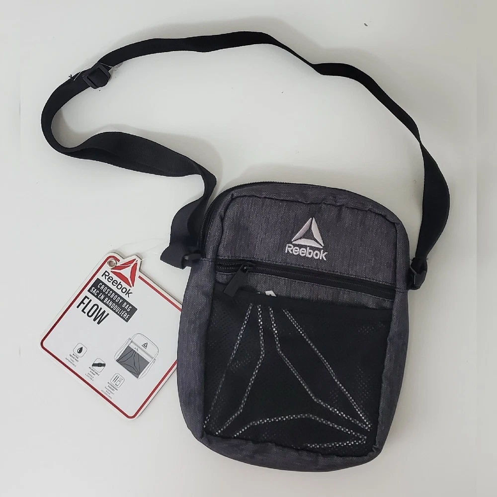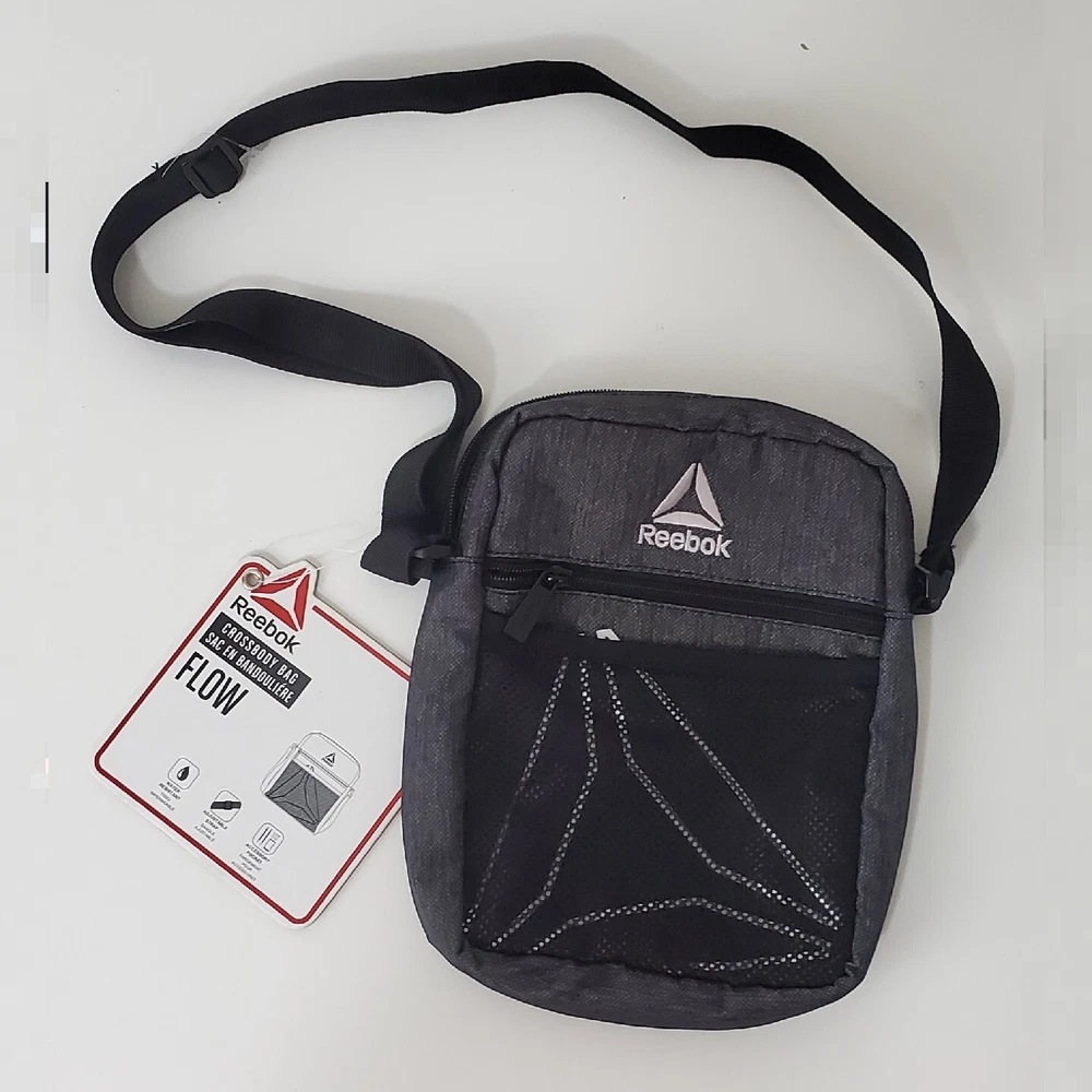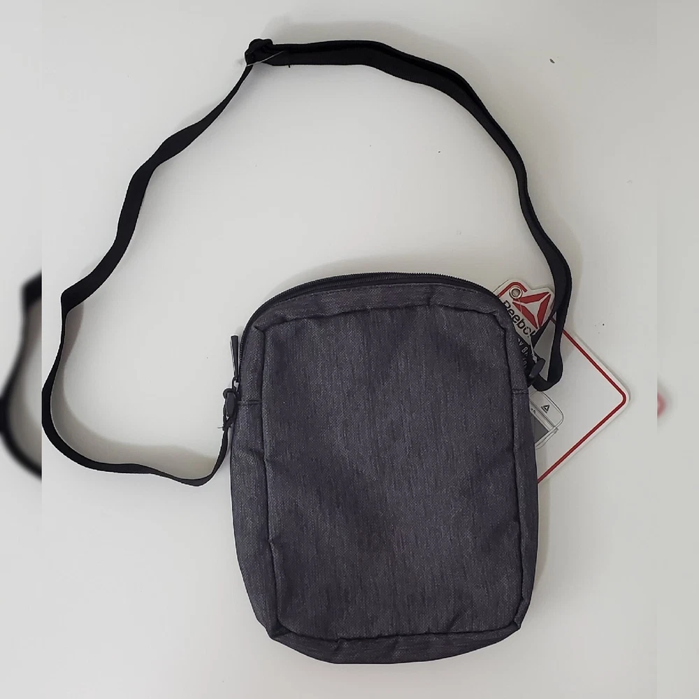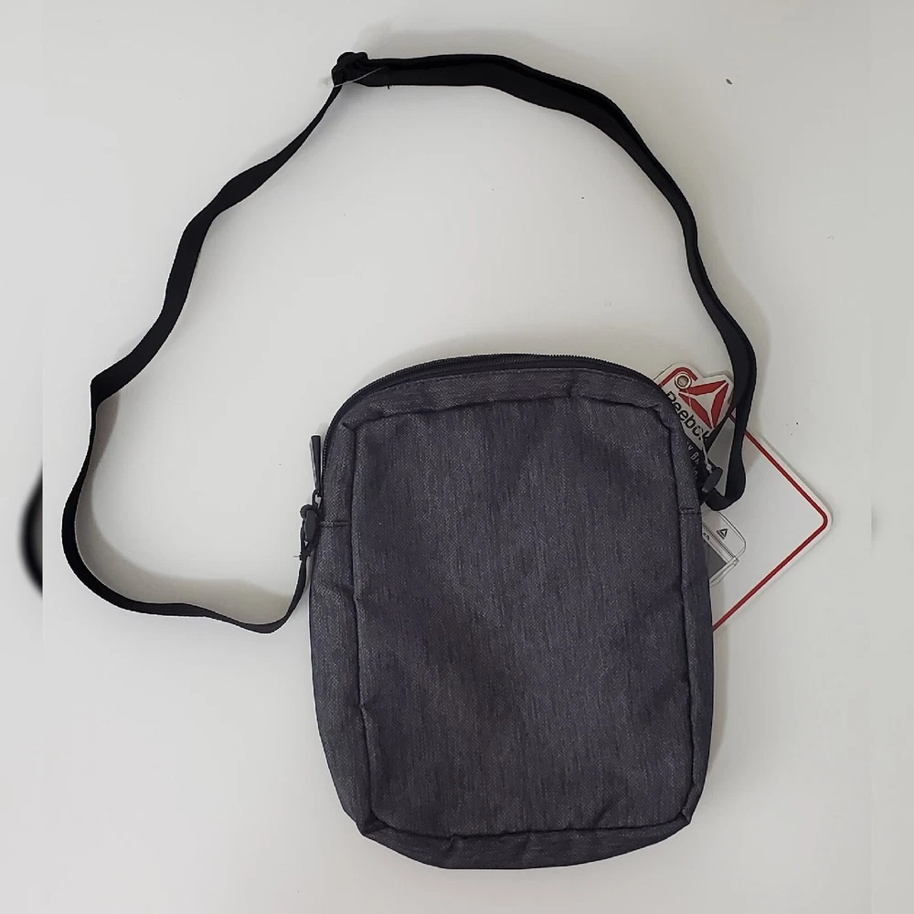 This stylish Reebok crossbody messenger bag is perfect for any occasion - from travel, to casual outings, to workwear. The bag features an adjustable strap and a zip pocket for added convenience. With a solid gray color and the Reebok logo as the theme, this bag is perfect for any fashion-conscious man who wants to make a statement. Made from durable polyester and nylon materials, this bag is built to last. The canvas lining adds an extra layer of protection for your belongings. Measuring 6.75" in width, 2.25" in depth, and 9" in height, this small but mighty bag is perfect for everyday use. Don't miss out on the chance to own this Reebok messenger bag today! WATER RESISTANT ADJUSTABLE STRAP ACCESSORY POCKET. Keeps essentials close at hand with multiple pockets.