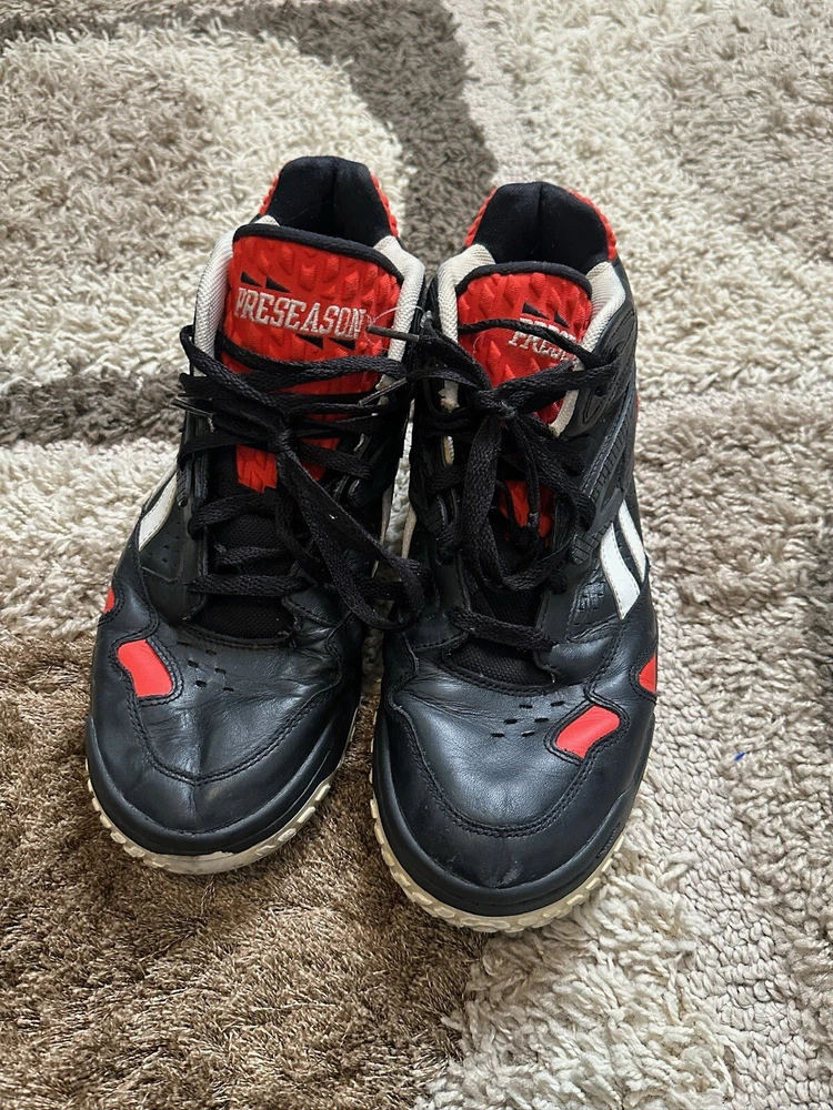 These Reebok Preseason Emmit Smith sneakers are a must-have for any athletic shoe collector. With a multicolor design and size 9.5 US men's shoes, these sneakers are perfect for running and jogging. The sneaker's style is perfect for men who want to make a statement while staying comfortable. The shoes are made by Reebok, a trusted brand in the athletic shoe industry. These sneakers are perfect for any man who wants to add a stylish touch to their wardrobe while staying comfortable during their daily activities. Don't miss out on these Preseason Emmit Smith sneakers, a great addition to any shoe collection.