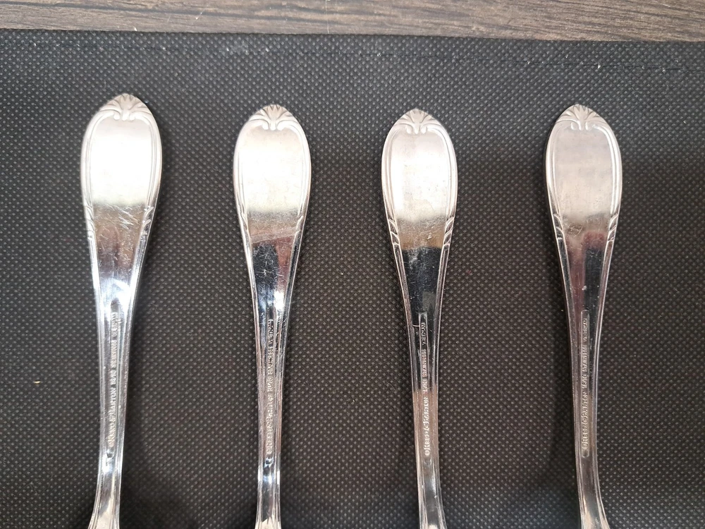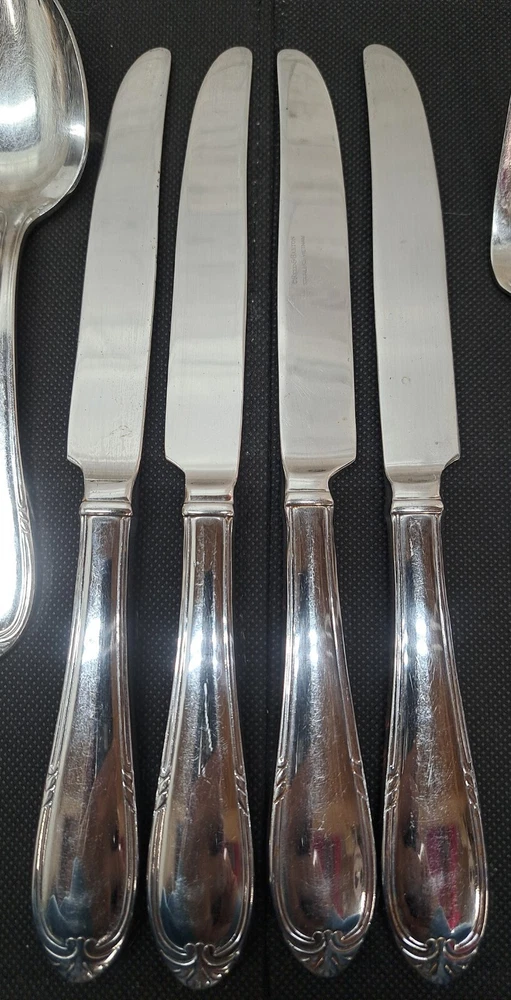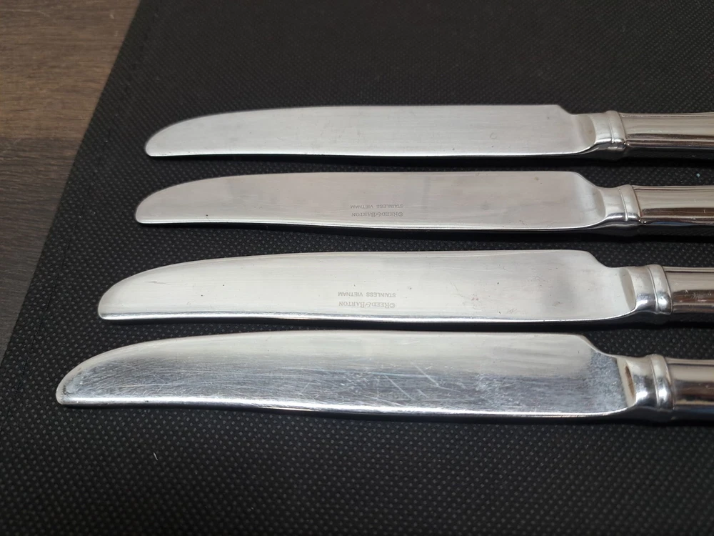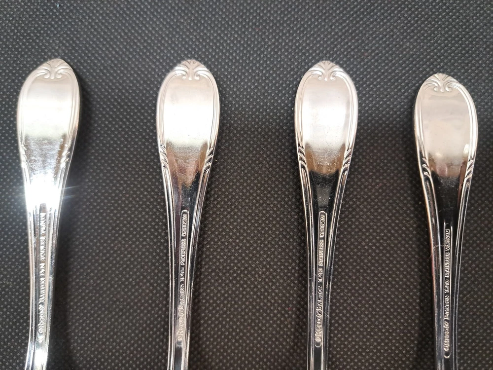 Country/Region of Manufacture:ChinaSet Includes:Fork, Knife, SpoonNumber of Items in Set:20Color:SilverPattern:MARLBOROUGHFinish:GlossyUPC:Does not applyBrand:Reed & BartonModel:Four 18/10Type:Standard SetService For:4Handle Material:Stainless Steelgtin13:Does not applyMaterial:Stainless Steel