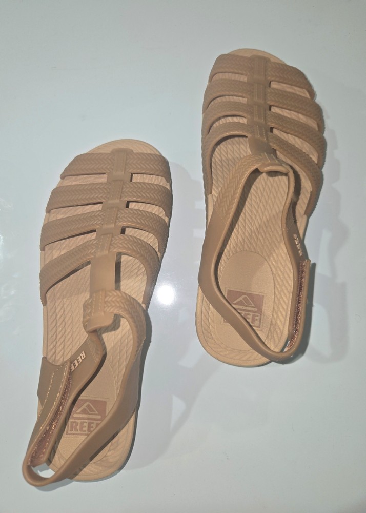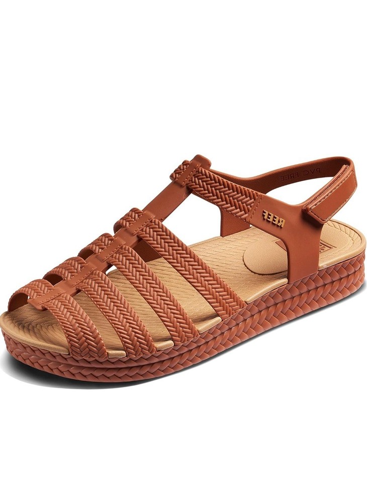 These Reef Sandals are perfect for girls in size 5 (9 in) who love the beach and want stylish yet functional footwear. These slip-on sandals feature an open toe design and are made of waterproof rubber/plastic material, making them ideal for casual occasions in the summer. The adjustable straps provide a comfortable fit while the non-slip sole ensures safety on wet surfaces. The brown color and fisherman style add a fun and beachy touch to the overall look, making them a great choice for active kids who enjoy playing by the water. The shoe length (9 inches) and the ankle marking (WS5#).