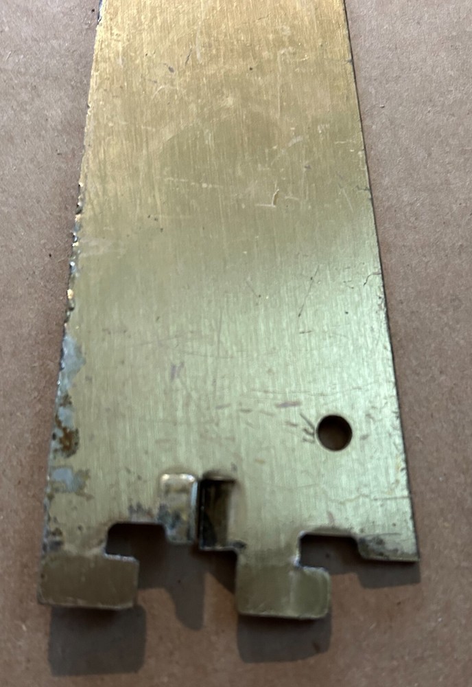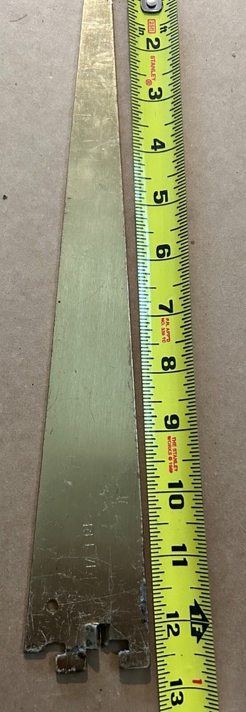 Upgrade your shelving with this vintage REEVE 12" x 2" metal shelf bracket in a gold finish. Known for its durability and stylish design, this heavy-duty bracket is perfect for home, office, or garage use. The "REEVE" branding adds a touch of authenticity to this piece. Minor wear and scratches enhance its vintage appeal without compromising its functionality. A great addition for those who appreciate quality and style in their shelving solutions.