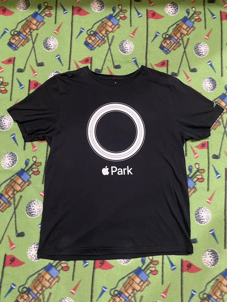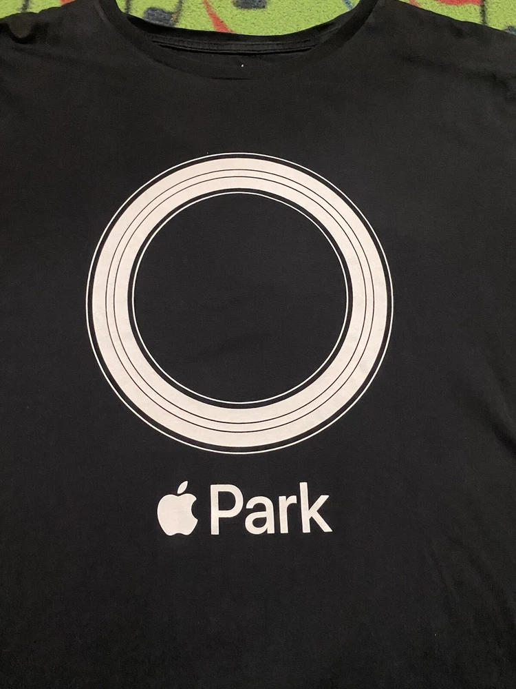 Get your hands on this limited edition Apple Park promo tech tee! Featuring a sleek black color and the iconic Apple logo, this t-shirt is a must-have for any fan of the brand. Available in men's size large, this regular fit t-shirt is perfect for everyday wear or for special occasions. Made by the trusted brand PARK, this t-shirt is sure to be a hit with anyone who loves stylish and comfortable clothing. Don't miss out on this amazing opportunity to add this unique t-shirt to your collection. condition: 10/10 so crispy