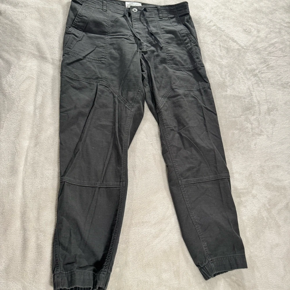 Get ready for your next outdoor adventure with these REI Co-Op Trailsmith Jogger Pants. Designed with comfort and functionality in mind, these pants feature a cotton, cotton blend and spandex material that provides stretch and ease of movement. The tapered leg style and mid-rise waistband with a drawstring closure ensure a snug fit, while the flat front and button, zipper, and logo accents add a touch of style. Perfect for travel, casual workwear, or hiking, these pants have pockets and a double knee detail that make them practical for any occasion. The solid gray color and nature, army, and grunge theme give them a stylish yet classic look. Whether you're out on the trails or running errands, these REI Trailsmith Jogger Pants are a versatile addition to your wardrobe.