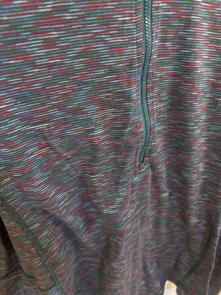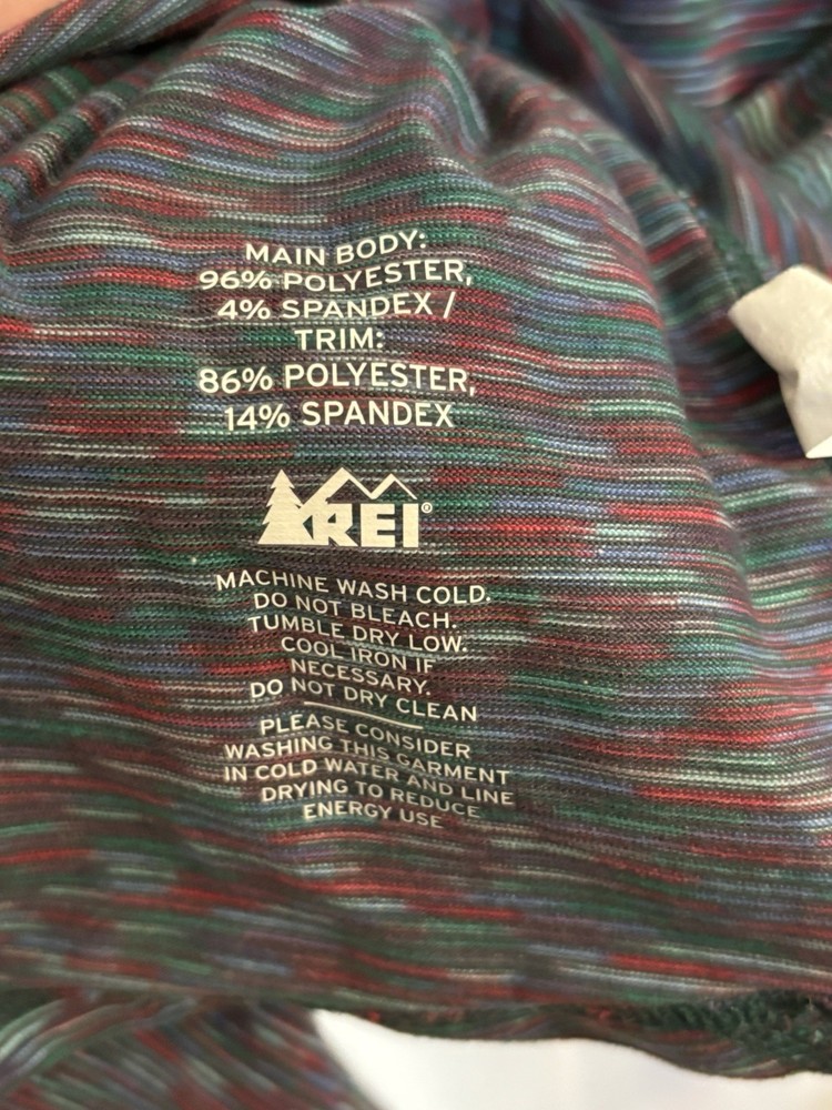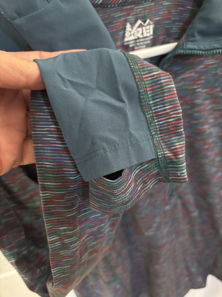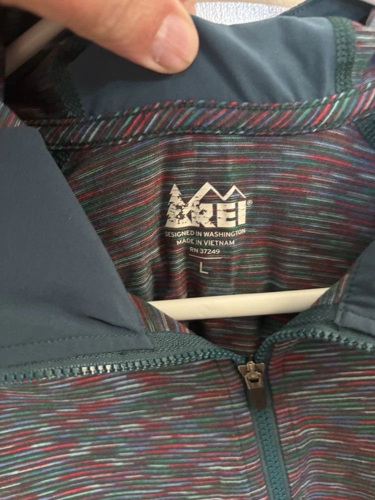 The REI Co-op Screeline Hoodie is a women's large 1/2 zip pullover designed for outdoor activities like hiking and running. Made of a polyester and spandex blend, this hoodie features a space dye pattern in a multicolor design. It is machine washable and easy to care for, with a regular fit that is lightweight, breathable, and stretchy for added comfort. The hoodie also includes a hood, pockets, and is suitable for all seasons, making it a versatile addition to any active woman's wardrobe.
