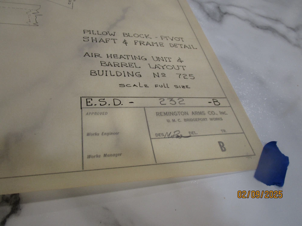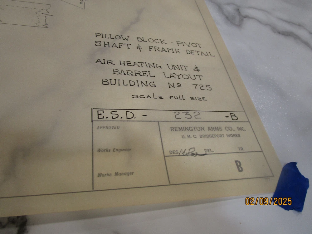 REMINGTON ARMS UMC BRIDGEPORT CT AIR HEATING BARREL PILLOW BLOCK SHAFT FRAME BLUEPRINT 22 X 34 1950S? NOT DATED SEE OTHERS LISTED Overall good condition, some edge wear , most will trim off before you frame it up. PLEASE SEE PICTURES FOR DETAILS ALSO CHECK MY EBAY STORE FOR MORE GREAT DEALS ! Will be tube shipped! The Old Remington Arms Munition Factory Remington Arms U.M.C plant in Bridgeport, CT . The shot tower – which bears more than a passing resemblance to a giant whiskey bottle – still looms over the area. The Bridgeport production complex was built in 1867 by the Union Metallic Cartridge Company, and the iconic shot tower was completed in 1909. The 10-story, 190-foot tall tower was the tallest building in Connecticut for years, and was intended to be both functional and ornamental. The production of shot involved pouring molten metal through a sieve at the top and then dropping it 133 feet so that perfect spheres would form and then be cooled and solidified by water in the basement. Though there were numerous accidents onsite, the most noteworthy disaster occurred at the plant in 1906 when 16 tons of gunpowder exploded, causing damage as far away as Long Island – although, miraculously, no one was killed. Several years later the Union Metallic Cartridge Company merged with Remington in 1912. The Bridgeport factory became the company’s headquarters and the property was expanded to 73 acres. Remington’s Bridgeport facilities were a major manufacturing location for arms in both world wars, producing weapons used by the United States, Britain, France, and Russia. During the depression, however, the company struggled financially and sold a controlling share of its stock to gunpowder manufacturer DuPont. Though the company diversified over the years, manufacturing clothing, typewriters, household utensils, cash registers, and tools at various plants across the United States, firearms and ammunition continued to be their primary source of income. My items have been collected and purchased for the past 40 years, most are used and I will describe the condition the best I can and take plenty of pictures for you to view the overall condition & defects will be noted in the description. Shipping will always be combined and discounted on multiple item purchased! I pack all items with extra care and shipping materials! High value items will be insured! Either by myself or requested by the buyer. Some items will require outside shipping company to pack and crate high value items. Some items will be security marked to protect myself and the buyer in case an issue with shipping or returns! Please if there is a problem, feel free to contact me before opening a case, this effects my rating I will try to resolve any issues,before it gets to this point. Thank you in advance for your feedback as it is appreciated!