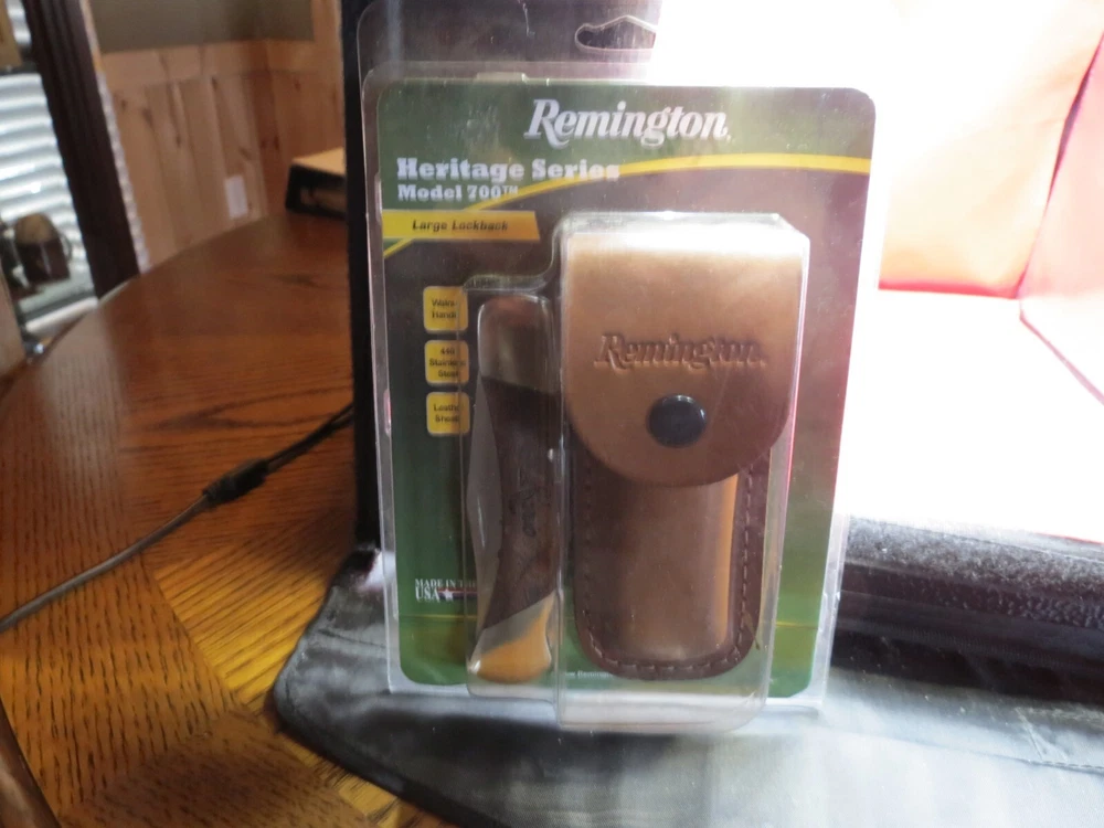 The Remington Heritage Series Model 700 Large Lockback is a pocketknife made in the USA with walnut handles. It features a single drop point blade with a lockback mechanism for secure usage. This manual opening knife has a classic design with a traditional brown color scheme, making it a collectible item for knife enthusiasts. The handle material adds a touch of elegance to the overall look of the knife, making it a reliable and stylish choice for everyday use or collection. WE KNOW YOU HAVE A CHOICE WHERE YOU SHOP… THANKS FOR SHOPPING WITH US AT NO PRESSURE SALES,LLC PLEASE BE SURE AND VISIT OUR OTHER ITEMS Thanks for looking YOU WILL RECEIVE THE ITEM PICTURED UNLESS IT IS A MULTIPLE LISTING OR OTHERWISE STATED.ALL BONE KNIVES COME FROM BOVINE (COW) BONE UNLESS OTHERWISE STATED !!