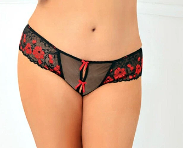 This is the Crotchless Lace Thong with Bow Detail by Rene Rofe. 90% Polyester 10% Spandex.... Black/Red Size S/M fits most women 90-140 lbs. Size M/L fits most women 120-160 lbs. Diamond Pleasures... where every Couple's fantasy becomes reality. All Products come in Discreet Packaging Combined shipping available Private Listing Return policy Return policy help Buyer should contact us within 30 Days after receiving the item. Refund given as Money Back or Exchange Return shipping will be paid by your buyer . 20% restocking fee will be charged. Additional return policy details: Due to health concerns and the nature of our products, we are unable to accept used and opened products. If the item you received is defective, please notify us within 14 days. We will send you a brand new replacement unit and provide a return shipping label for the defective unit.. Returns of unopened, unused and items with manufacturing defects are accepted but MUST be mailed back in its ORIGINAL (FACTORY) PACKAGING. The merchandise returned must be in the original packaging and un-used. Buyer pays return shipping Unopened items are subject to 20% restocking. Postage on returns unopened buyer pays.. We will be responsible for the shipping on the replacement.