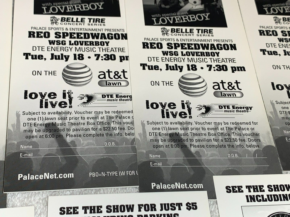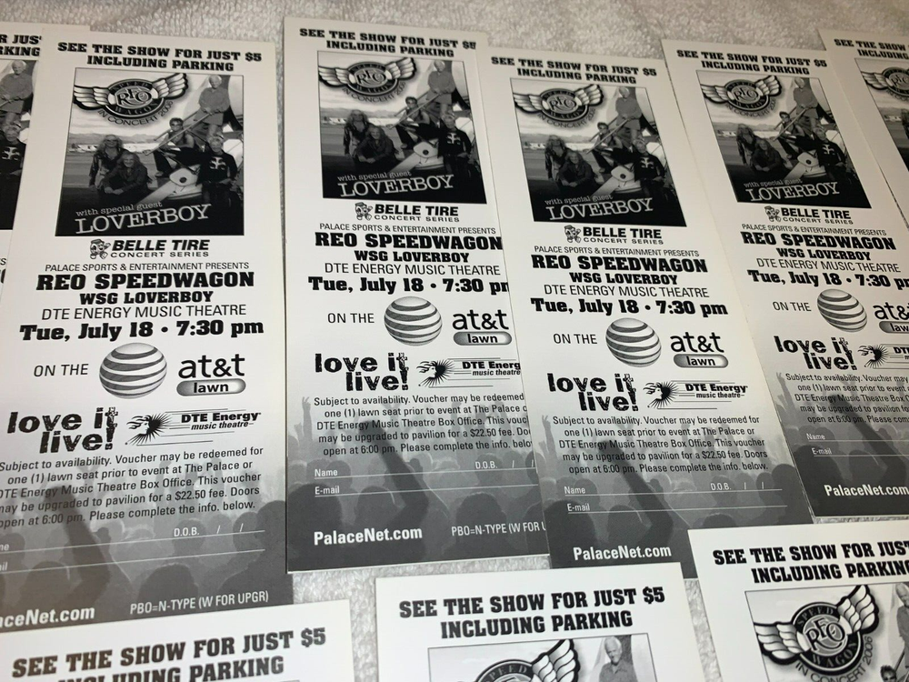 REO SPEEDWAGON LOVERBOY 19 UNUSED TICKET VOUCHER LOT DTE MUSIC THEATRE PINE KNOB