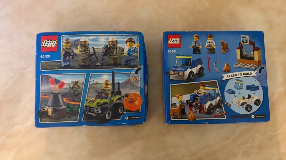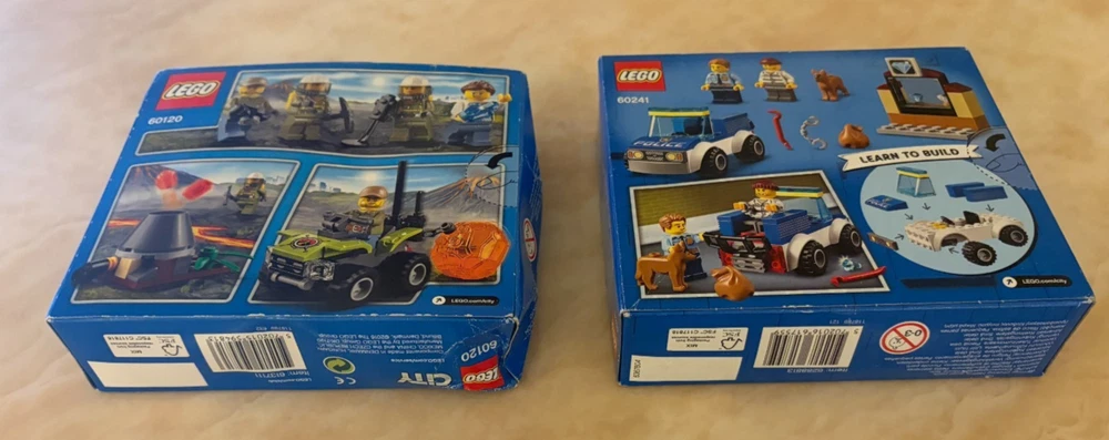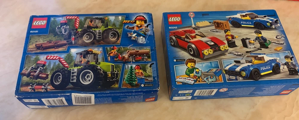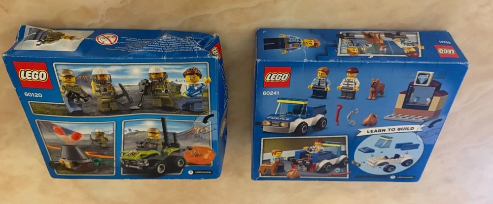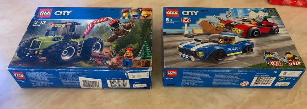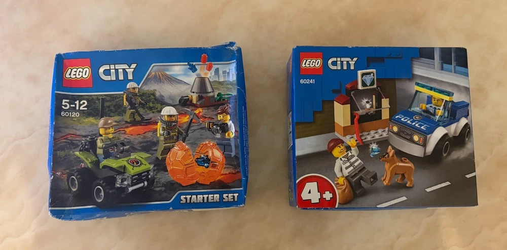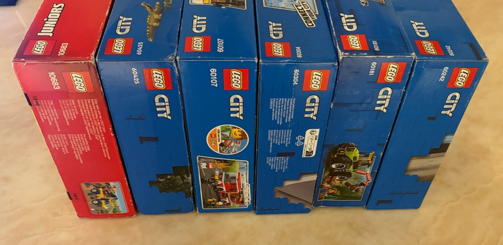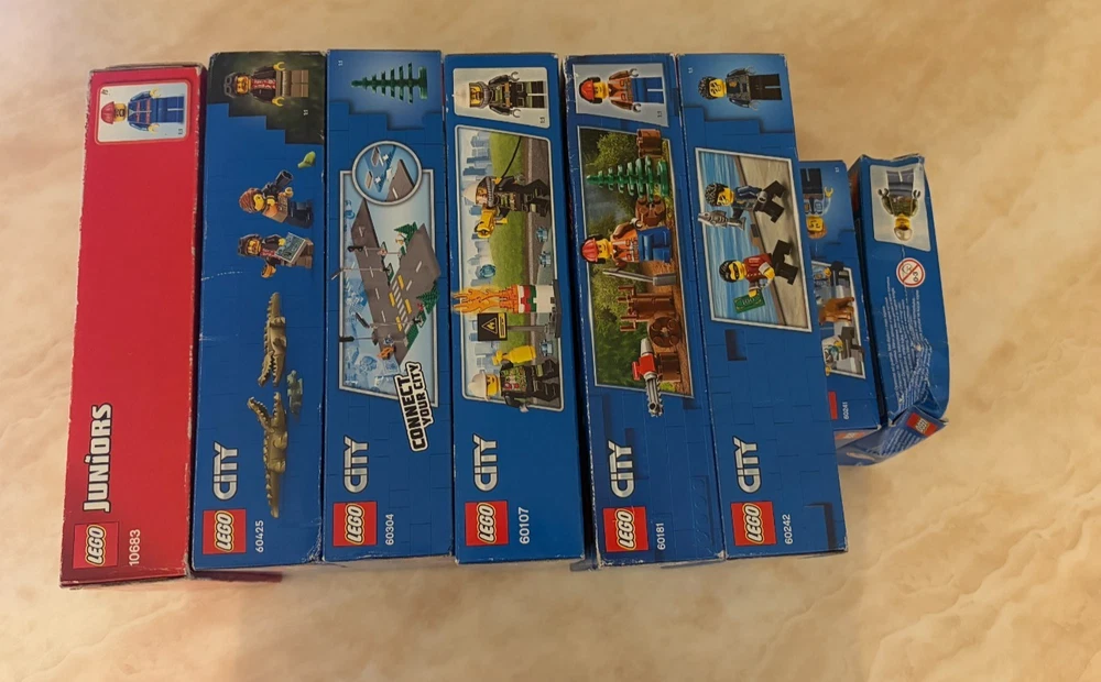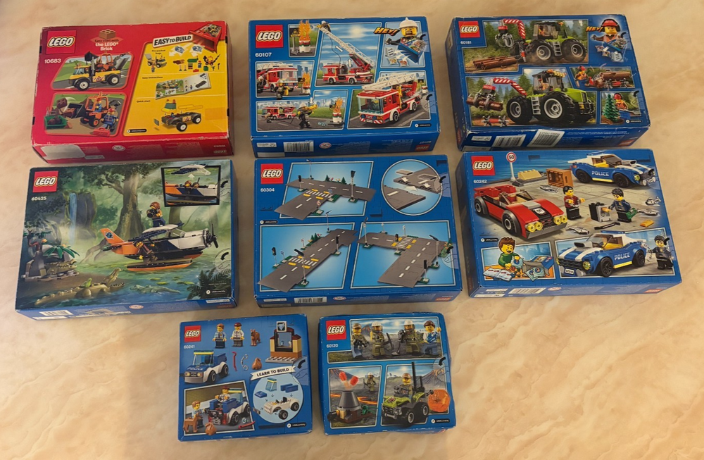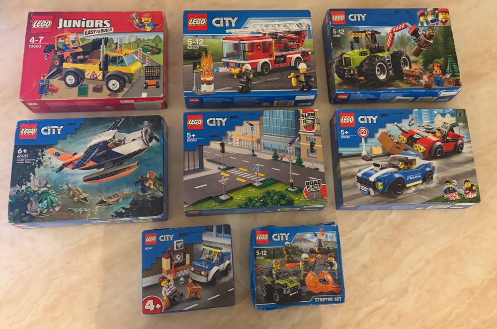 This Bundle contains a set of 8 Lego City items. All of these items are brand new and sealed. These sets are also all retired. The Bundle includes: 10683 - Road Work Truck (Part of the Lego Juniors Range) - 2015 60120 - Volcano Starter Set - 2016 60107 - Fire Ladder Truck - 2016 60181 - Forest tractor - 2018 60241 - Police Dog Unit - 2020 60242 - Police Highway Arrest - 2020 60304 - Road Plates - 2021 60425 - Jungle Explorer Water Plane - 2024 Please note that there is a small amount of damage on some of the boxes but they are all brand new and sealed. In case you have any questions please feel free to ask.