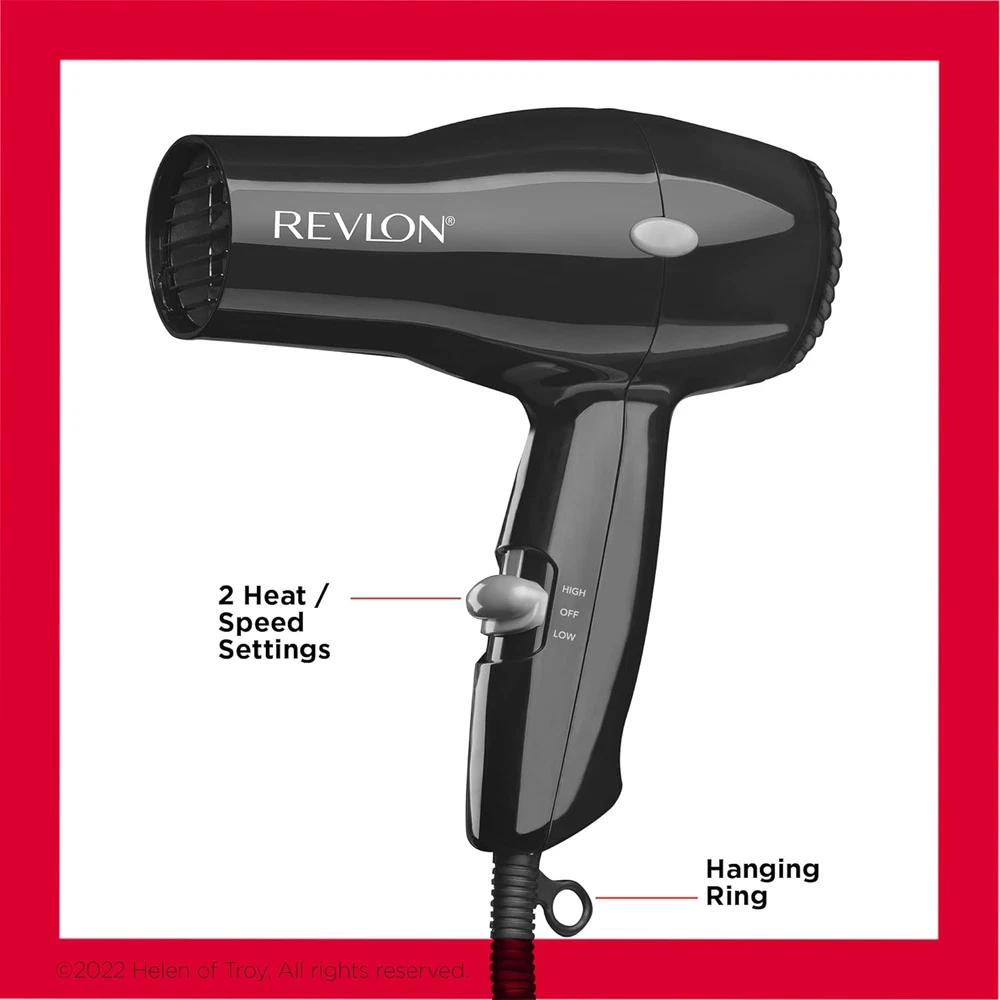 Dry, Style & Go: Quickly dry and style your hair with 2 heat/speed settings to suit your hair needs. Travel-Ready: Compact and ultra lightweight design are perfect for styling while on-the-go. Powerful Drying: 1875 Watts for powerful styling in a compact, lightweight dryer. Anti-Slip: Protective anti-slip bumpers provide extra care when styling for more grip and control. Easy Storage: Hanging ring makes for easy storage in your bathroom, bedroom, or vanity. Dare to be new kind of bold with REVLON Hair Tools. Whether you're after salon-style blowouts, one-of-a-kind waves and curls, the perfect hair accessory, or you want to reinvent your style, REVLON has the tools to take your hair where it's never been before. The REVLON Essentials Compact Hair Dryer is ultra lightweight, allowing you to pack this styling tool pretty much anywhere: carry-on luggage, your favorite gym duffel, or a trusty overnight bag. Despite its size, this compact hair dryer doesn't compromise on performance. Built with 1875 Watts, the REVLON Essentials Compact Dryer provides a powerful and steady airflow. Two heat and speed settings give drying flexibility and control, so you can customize the heat to your hair needs. Protective anti-slip bumpers bring extra grip and control, helping you give more care to your style. This dryer is complete with a hanging ring for easy and convenient storage, whether in the bathroom, bedroom, or at the gym. Reveal your style with REVLON Hair Tools. NOTE: Wattage may vary depending on location of use. For 120 volts outlets only.