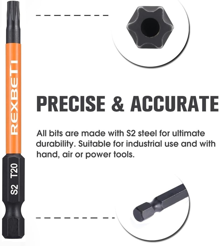 Free eBay listing template designed by dewiso.com REXBETI 12 Piece Torx Head Screwdriver Bit Set, 1/4 Inch Hex Shank S2 Steel Magnetic 3 Inch Long Drill Bits, T5-T40 (Torx Head) FREE AND FAST SHIPPING! About this item Tamper Proof Security Bits in the Following Sizes T5, T6, T7, T8, T9, T10, T15, T20, T25, T27, T30, and T40(Note: T5 and T6 are not security tamper proof type) Drill bits made from high quality S2 steel material for ultimate durability, suitable for industrial use Strong magnetic and high precision. each edge can be accurately locked screws, no damage to the screw and the screwdriver head Not only can you use the bits on hand tools, you can easily insert them to any 1/4 inch hex shank power drill to use Product We offer a 30-Day Return Policy on items which you are not completely satisfied with. You have the option for a full-refund or an exchange of the item. No returns are available on items shipped outside of the US . Shipping We offer Free Shipping to the US and ship within 2 business days of payment, usually sooner. We use UPS express shipping. That's why your products are usually delivered within 3 days . Contact We try our very best to make sure every customer is completely satisfied. If there's a problem , message us! We're happy to help. 24/7 live chat available.