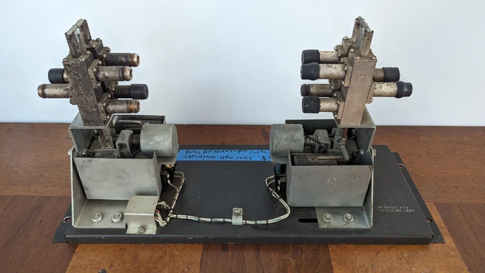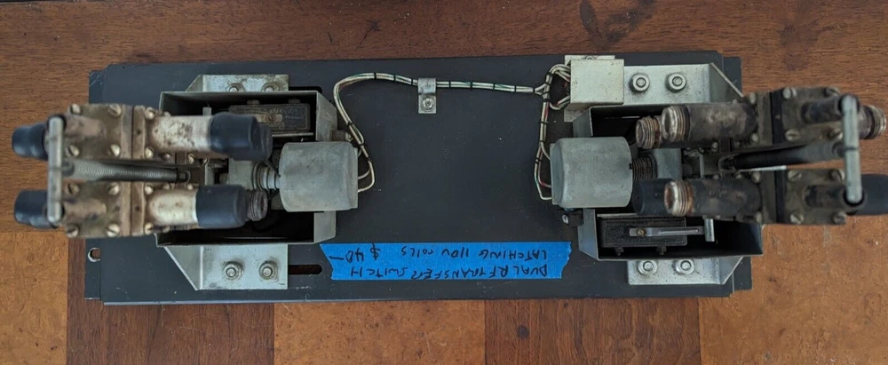 DUAL RF Transfer Switch latching 110V coils dimensions : 19 x 6.5 x 9.5" Coming from estate sale. Untested, sold as is. ** We ship via USPS to 50 States (excluding APO/FPO) or UPS to 48 States in USA only. ** Please make your payment within 48 hours after the auction ends. ** We will ship within 48 hours (excluding weekends) after the receipt of your payment. ** Please email us if you purchase more than 1 item. We will try to combine the shipments whenever possible. ** If any questions, please contact us before your bidding. ** If there is any problem with the shipment, please contact us ASAP before you leave a feedback. T H A N K Y O U