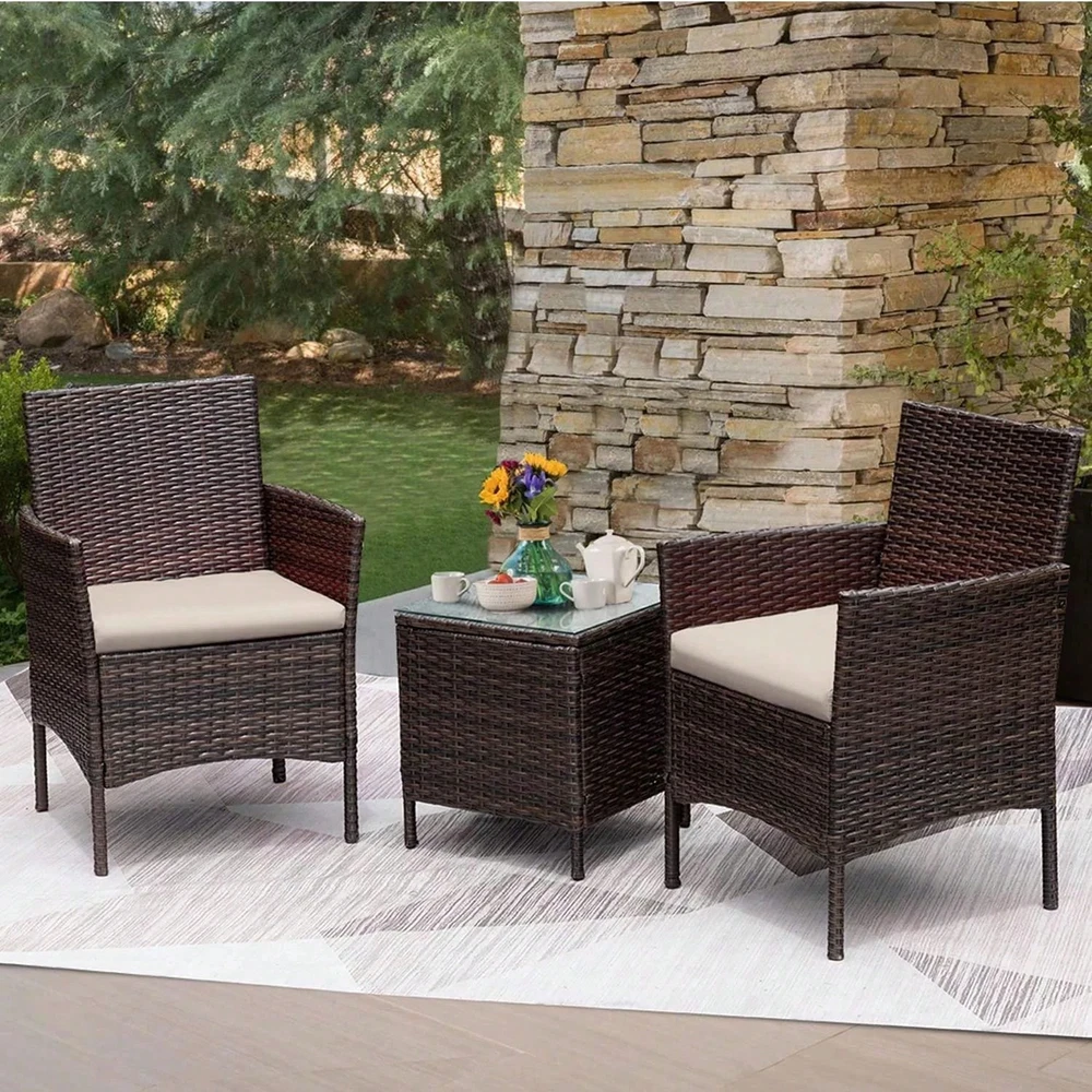 Absolutely love this patio set! The wicker rattan looks stylish and the beige color blends perfectly with my outdoor space. The chairs are surprisingly comfy, and the coffee table is sturdy yet lightweight—great for drinks or decor. Super easy to assemble, and the quality feels premium for the price. Perfect for relaxing mornings or evening gatherings. Highly recommend!