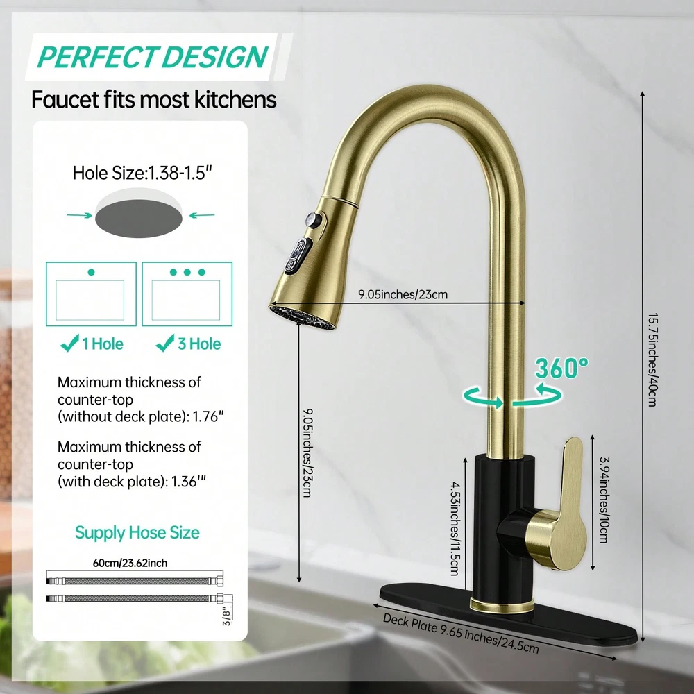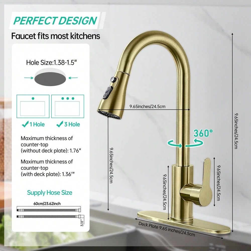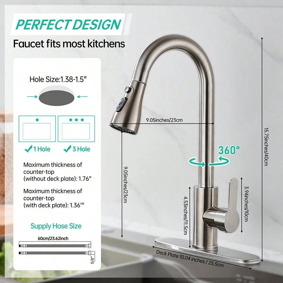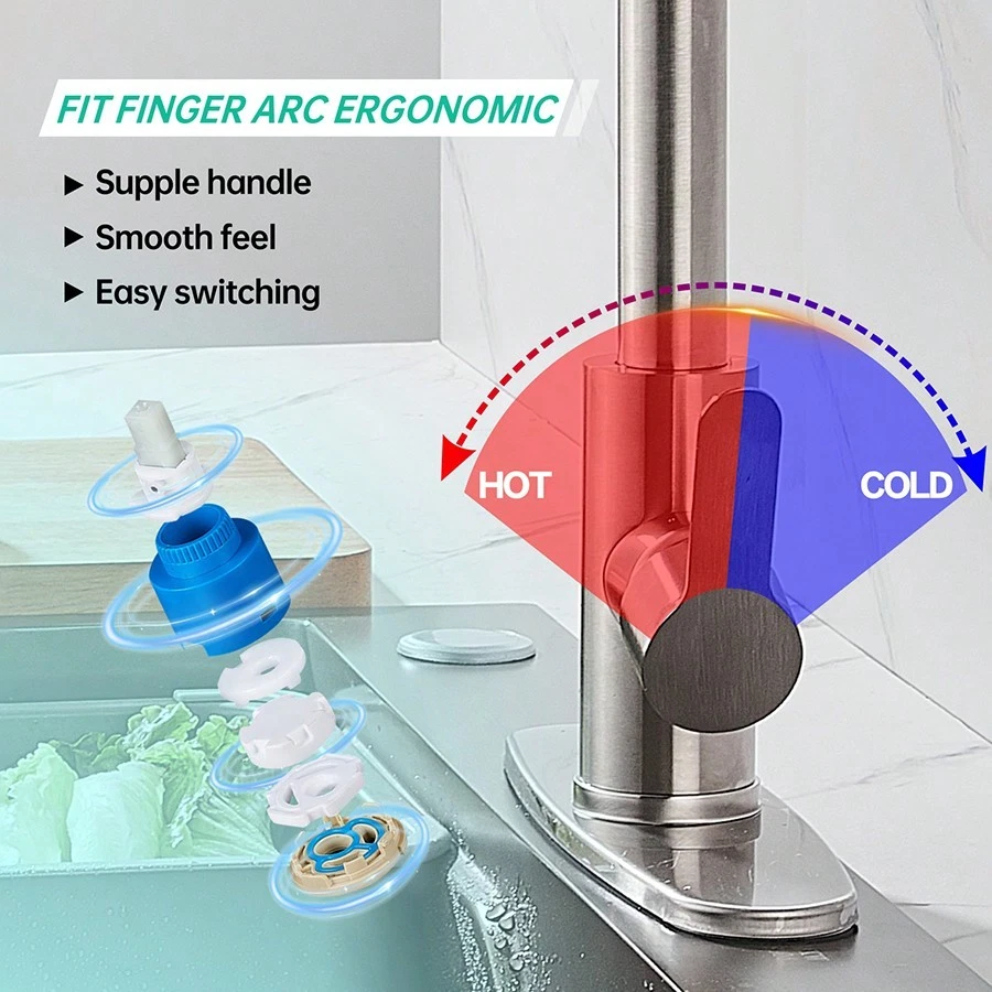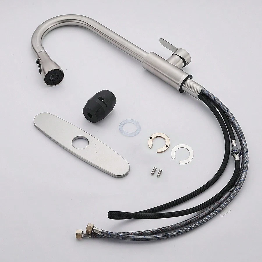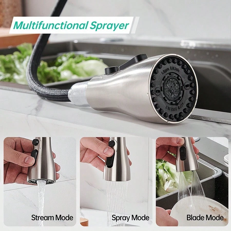 This high-arc pull-down kitchen faucet is a game-changer! The brushed nickel finish looks sleek and modern, while the smooth swivel and powerful spray make cleaning dishes a breeze. The magnetic docking keeps the spray head securely in place, and the installation was surprisingly easy. Great water pressure, no leaks, and it feels sturdy—definitely worth every penny!