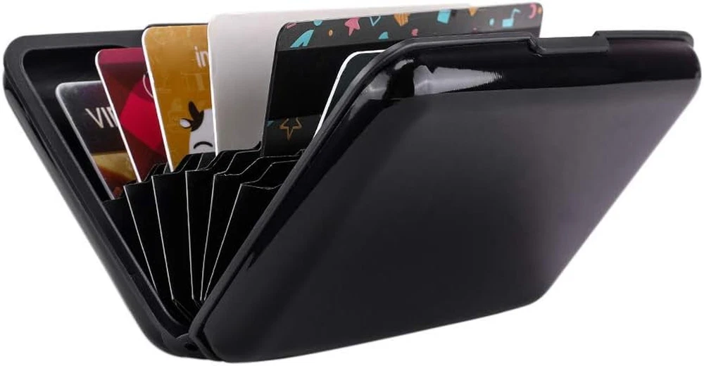 1. This sleek aluminum card holder is a lifesaver! Blocks RFID scans effortlessly, keeping my cards safe from digital theft. Super sturdy yet slim enough to fit in my pocket—perfect for travel or daily use. Holds multiple cards snugly, and the brushed black finish looks professional. A must-have for anyone worried about security!