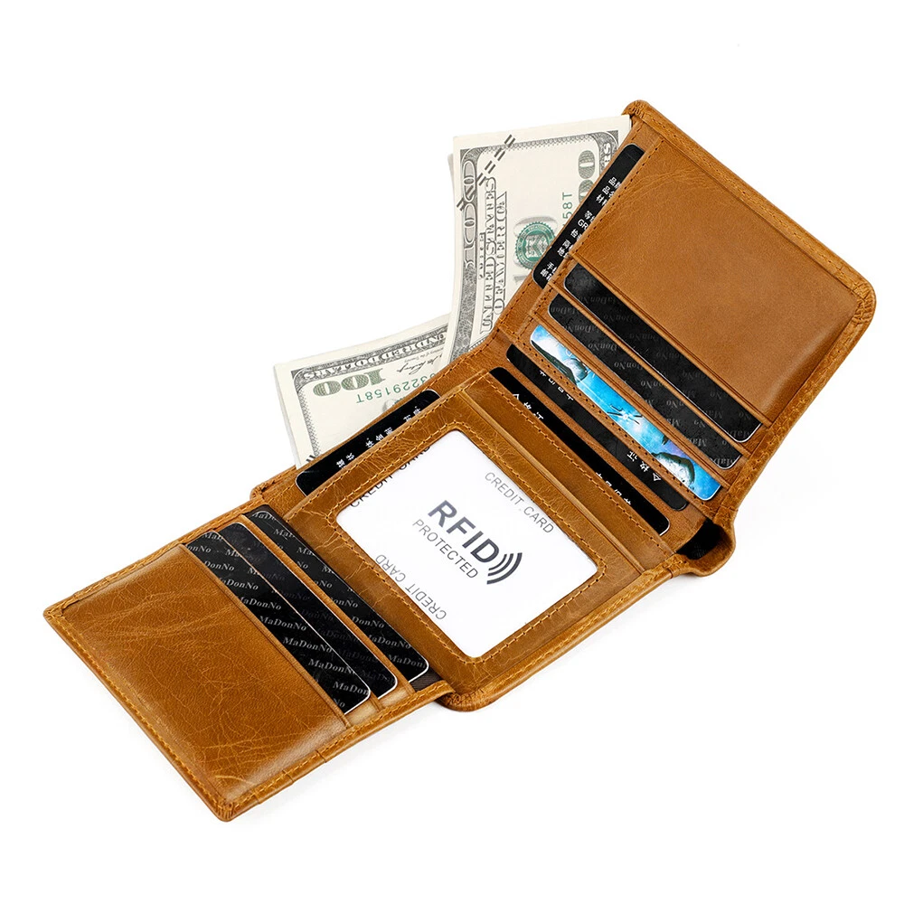 Description: The RFID wallet is made of Faux Leather,which is smooth,soft environmentally friendly,wear-resistant, durable,lightweight and portable,The wallets are delicately stitched, flat and firm, with no loose stitches, which minimizes reduce the rate of le ather getting stretch and peeling off. Structure:13 Bank card pocket,2 Mezzanine Position,1 photo Holder. Perfect choice for men, Men and boys. It is also a ideal gift on Birthdays, Anniversaries, Valentines day, Christmas, Father's Day, Graduation or other special occasion. Material : Faux Leather Colors: Bl ack/ Brown/ Coff e e S ize: 12cm*9.5cm*1.5cm(4.72"*3.74"* 0. 59") Note: 1. There is 2-3% difference according to manual measurement. 2. Please note that slight color difference could be acceptable due to the light and screen. Package Included: 1 X Men's Wallet Without Box.