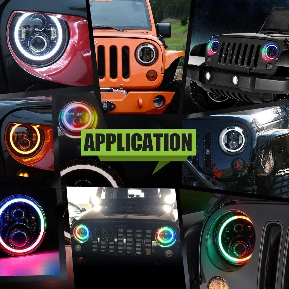 RGB 7" Halo LED Headlights 4" Fog Lights Combo For Jeep Wrangler JK JKU 2007-17 Similar Items Description # Ship within 24 hours. # 100% New & Excellent Quality # Strictly QC, Each item was fully checked before shipping # FREE & FAST Shipping Delivery with Tracking Number 2x 7'' RGB Halo LED Headlights DRL For Jeep Wrangler JK TJ LJ Adventure Design: Fit For RGB Jeep Wrangler LED Headlight adopt the latest fantastic design and new technology, keep your adventure going with an enhanced lighting system and super bright replaces original halogen. New LED, New APP. Multi Function: Our LED Headlight with Halo Angel Eyes, Full Functions, Have Fun! Music responsive,flashing/chasing mode,DIY blinking,Compatible iOS & Android,lighting patterns. Just Enjoy It. Excellent Material: Die-cast Aluminum design for optimal cooling and heat dissipation,LED Lens projector ensures this beautiful 7" LED headlight has super bright, reduced glare,impact resistant, scratch resistant. Built-in rubber seal with the performance of Waterproof, Shockproof and Dustproof. Easy Installation: 7inch LED Headlight fit for Jeep wrangler assembly will take you around 20 minutes for installation. Plug and Play, Connect the wiring and scan the QR code, RGB halos controlled by through APP. Size: 7 inch Voltage: 12-30V DC LED power: 60W Connector: H4 To H13 Housing Color: Black Life Span: 50000Hrs Working temperature: -40~85℃ Material: Die-cast Aluminum 2x Amber/White Halo 4" Inch LED Fog Lights For Jeep Wrangler JK TJ LJ Dimensions:4inch Led Power:30W Light Modes: White Fog Light, Amber/White Daytime Running Light, Turn Signal Light Operating Voltage:12V DC Housing Material: Die-cast Aluminum Color Temperature:6000K Housing Color: Black Waterproof Rate: IP 68 Theoretical Lumens Output:3000 LM Color Temperature:6000K Lens Material:PC Life Span: 50000+hours Fitment: Fit For Jeep Wrangler TJ (1997-2006) Fit For Jeep Wrangler TJ Unlimited / LJ (2003-2008) Fit For Jeep Wrangler JK 2 Door (2007-2017) Fit For Jeep Wrangler JK 4 Door Unlimited (2007-2017) Fit For Jeep Wrangler TJ 1997-2006 Fit For Jeep CJ-8 Scrambler 1981-1985 Fit For Jeep CJ-7 1981-1985 Fit For Wrangler JK Models require H4-H13 adapters Package Includes: 2 x 7inch RGB Halo LED Headlights 2 x 4inch Amber/White Halo LED Fog Lights Detail Image Payment 1.We accept ebay payment only. 2.All major credit cards are accepted through secure payment processor ebay payment. Shipping 1.We ship to your eBay or ebaypayment address. Please make sure your eBay and ebaypayment address is correct before you pay. 2.Items will be shipped within 1-3 business day when we received payment. 3.Delivery time depends on destination and other factors; 4.International buyers please note: a.Import duties, taxes and charges are not included in the item price or shipping charges. These charges are buyer’s responsibility. We will try our best to reduce the risk of the custom duties. b.Please check with your country's customs office to determine what these additional costs will be prior to buying. Returns The buyer is responsible for all return shipping including a result of customer error or defective item. 1) If you received an incorrect, damaged, defective, or item not as described, contact us for a partial/full refund or replacement on our cost. 2) If you want to return the item, please contact us within 30 days after package received. Return products must also be in its original condition: including box, packaging and all other accessories. FAQ Q1:Will this bulb fit my vehicle? We can match almost any vehicle to one of our bulb sizes. eBay only lets us include some vehicle fitments per listing, but if your vehicle does not show up on the compatibility table at the top of our listings, welcome you to contact us for free consulation before purchasing a product. Q2:Neither side lighting up? Both sides flicker, flash, interfer radio or work inconsistantly. Check the headlight fuses to insure correct installation. If this doesn't work, there may be a voltag Q3:My bulbs won't fit Special bulb holder may be required. See if you can take the holder from the stock bulb. If not, let us know. The bulb size may be wrong, double check the item you received with the item you ordered. Do you have an aftermarket lighting housing? These may not be perfectly fitted for aftermarket bulbs and will require some manual modifications. Please buy a universal extended dust cover if the cover can not hold the headlight after installation. Q4:WARNING ABOUT POLARITY, Unlike halogen bulbs, LED are polarity sensitive. BEFORE you start your LED kit installation, verify the polarity on your vehicle by simply plugging the LED bulb into your vehicle socket. - if your light turns on, please proceed to install both bulbs onto your vehicle. - if your light DOES NOT turn on, disconnect the bulb and flip the socket in order to reverse the polarity (this will not damage your vehicle electrical system in any way). Once you made sure the LED bulb turns on, please proceed to install both bulbs onto your vehicle. Note: There is no convention when it comes to polarity. Different car manufactures have different polarity setup, even within the car model the polarity setup on your low beams and high beams might be different.