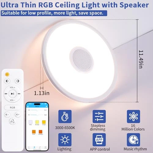 Menu 1. We require immediate payment. 2. We currently accept payment via eBay managed payments only. 3. Once payment is cleared, we will dispatch your shipment within 1-3 business days. Please refer to the "Shipping" tab for more information regarding shipping speed to your destination. RGB LED Ceiling Light, with Bluetooth Speaker, 24W 11Inch Smart Music Ceiling Lamp with App and Remote Control, 3000K-6500K Color Changing Lights Fixture for Child Bedroom Bathroom, White Product description Bluetooth Speaker: This bluetooth speaker light boasts an embedded 5W Bluetooth speaker, effortlessly syncing with your smartphone. You can freely choose the music, podcast or books you want to listen to, making them ideal for bath enjoyment, kid’s bedtime stories, and family carnival parties. Colorful RGB Lighting: With 16 million RGB colors and 12 preset scenes, you can even create your own custom scenes. Featuring a color temperature range of 3000K-6500K (Warm, Natural, Cool) and smooth dimming from 10%-100%, this multi-purpose and versatile ceiling light fixture adapts to your mood and desired ambiance. Memory Function & Time Setting: Simply keep the light on for over a minute, then off for 15 seconds or more, and it will retain your settings upon reactivation. This round dimmable ceiling fixture also features a timer function, ideal for children, the elderly, and night breastfeeding. Smart LED Ceiling Light, Smart Control: Utilize the provided remote and mobile app to manage your smart music light. Tailor the light color, brightness levels, color temperatures, and RGB settings to your liking, anytime, anyw. Effortless Installation: Our 11 inch ceiling light arrives with a hanging wire rope and all necessary accessories. Simply rotate to install and you're done in 10 minutes. The hardwired flush mount ceiling light fits most junction boxes. Secure & Energy-Efficient: Our 24W LED ceiling lamp employs high-quality SMD2835 lamp beads, offering superior brightness while conserving up to 85% of energy. The high-quality, fire-resistant plastic shell prevents potential risk of electric shock, leakage, or disasters caused by electrical short circuits. PLEASE MESSAGE US IF YOU HAVE ANY OTHER QUESTIONS, AND MANY THANKS FOR READING ALL OF THIS. Copyright ©#. All Rights Reserved.