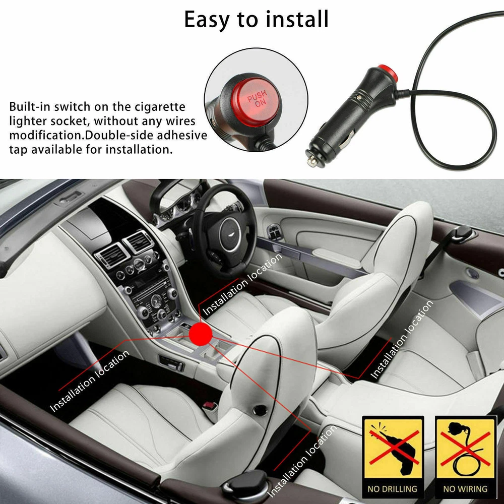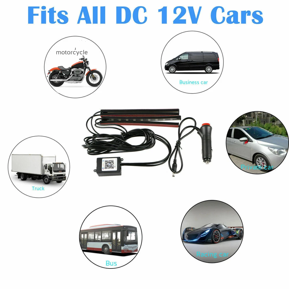 Product Description: Decorative your car by this RGB LED Strip Lights, changing the atmosphere with different color and lighting mode. Enjoy a beautiful, exotic and romantic atmosphere tonight. Product Features:Music Control LED Strip Lights 100% Brand new and high quality. Music Sync : Syncs with music rhythms, adding dynamism and vitality to your car's interior Romantic Atmosphere : Easily change the ambiance with exquisite LED decoration for romantic nights. Product Specifications: LED Type: 5050 SMD, ensuring high quality1. LED Quantity: 48 pcs (4 tubes, 12 LEDs per tube)1. Compatible Vehicles: All cars with DC 12V power supply1. Smart Control: Wireless Remote: Adjust 8 basic colors, brightness, speed, and patterns with ease. Plug-and-Play: Built-in switch on the cigarette lighter socket, no wiring modifications needed Installation & Usage: Easy Installation: Double-sided adhesive tape for quick setup on the car's interior floor or dashboard1. Versatile Applications: Suitable for car decoration, homes, bars, and other venues Note: The Total 16 colors includes 8 bright cyan/red/green/blue/white/orange/yellow/purple colors and 8 deeply cyan/red/green/blue/white/orange/yellow/purple colors. Easy to Install No need to modify the wiring, simply peel off the double-sided tape behind each strip and apply them under the seats or in the footwell area. A built-in switch on the cigarette lighter socket, easy to turn it on/off, no need plug and pull frequently. Specification Device Type: RGB Car Decorative Light Strip Strip Light Quantity: 4pcs LED Type: 5050SMD LED Quantity: 12pcs for one strip light Strip Light Size: 8.66" L x 0.55" W x 0.2" H (222 x 14 x 6 mm) Applicable: With cigarette lighter head, no need to modify the circuit. Material: PVC Voltage: DC 12V Power: 6W Power Cable Length: 2 cables: 6.3ft (1.92m), Other 2 cables: 4.6ft (1.42m) Weight: 7.83 oz (222g) Colo r: white/red/blue/green/ice blue/orange/yellow/pink purple Package Includes 4* Music Control LED Atmosphere strip light 1* Remote Controler 1* USB