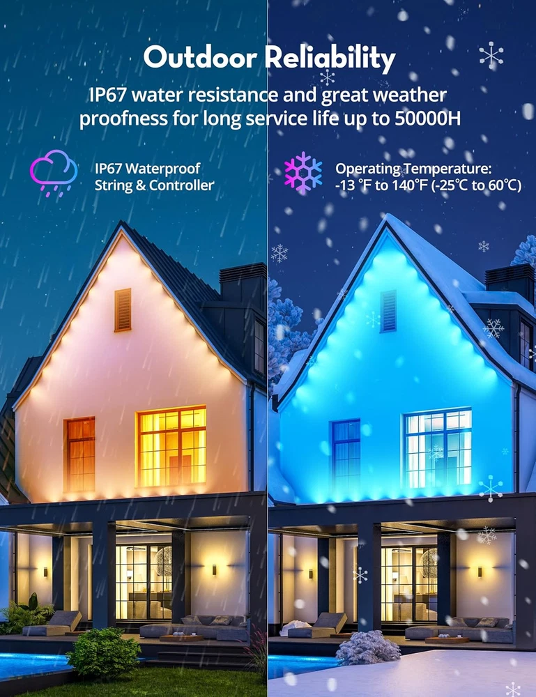 Store New Arrivals Add to Favorite View Feedback Contact RGB+IC Permanent Outdoor Lights, 100Ft Smart Eave Lights, String Lights, IP67 Waterproof for House Garden Christmas Decor Birthday Gift with Alexa, Google Assistant App/Remote Control Description Light Source Type LED Style Modern Power Source DC Number of Light Sources 60 Control Method App, Remote, Voice Theme Decorative Lights Connectivity Protocol Bluetooth, Wi-Fi Brand Name SUNLINKCO Brand SUNLINKCO Occasion Type Party, Christmas, New Year, Anniversary, Halloween Seasons All Seasons Additional Features Dimmable, Waterproof, Smart Control, RGB+IC, Color Changing Package Dimensions 9.65 x 9.53 x 6.77 inches; 5.62 Pounds Manufacturer SUNLINKCO Indoor/Outdoor Usage Outdoor Light Color Multicolor Water Resistance Level Waterproof Connectivity Technology Bluetooth, Wi-Fi Occasion Party, Christmas, New Year, Anniversary, Halloween Special Feature Dimmable, Waterproof, Smart Control, RGB+IC, Color Changing Color White Wattage 48 watts Indoor Outdoor Usage Outdoor Voltage 24 Volts Style Name Modern Size 100ft [Vibrant Festive Lighting]: 50Ft Permanent Outdoor LED String Lights comes with 60pcs upgraded RGB+IC LED chips displaying colorful and bright light with 16 million colors that allows you to customize various lighting effects to decorate your house; The string light is designed with color control function for you to DIY single color for each LED light, creating vivid color and eye-catching lighting effect [1-Year Warranty & Weatherproof Design]: This permanent outdoor string lights pass IP67 waterproof rating for enabling outdoor use, boasting a large temperature range from -13 to 140 degrees Fahrenheit (-25 to 60 degrees Celsius) and up to 50,000 hours long service life for withstanding different weather conditions, ensuring durability and stable lighting for longtime use. With 1-year warranty ensures your confidence in our product. We are dedicated to addressing your inquiries regarding installation and usage, while also delivering outstanding customer support [Smart APP & Voice Control]: You can use Smart Life APP or remote to adjust light color, brightness and modes including 8 DIY scene modes, 6 dynamic modes and 3 music modes, perfect for making personalized lighting ambience, for example, creating warm atmosphere for Christmas and horrifying atmosphere for Halloween; With intelligent voice service, the permanent lights allow you to control it with Alexa and Google Assistant [Music Sync & Wall Washing Effects]: Featuring music sync function, the outdoor eave light color and speed will change along with the rhythm and volume of the internal music of your phone, providing gorgeous lighting color and dynamic effect for you to enjoy the immersive visual and auditory experience; The light with wide beam angle more than 90° to offer large and attractive wall washing effect, please install it 2 to 4 inches from the corner for achieving optimal effect [Simple Installation & Timer Function]: You can install the permanent string light with the included adhesive tape and screws, using the adhesive tape to fix the light on smooth walls or mounting it on rough surface with screws; This LED string light with timer function enables setting a specific time to turn off the light automatically, ideal for avoiding keeping you light on all night, saving more electricity Product Description 1 Daily Decoration 2 Christmas Decoration 1 Multicolor Lighting 2 Warm Lighting 3 Cold White Lighting Mounting Angle 1 Easy Installation 2 Mounting Angle ABOUT US We offer the best prices around on high quality products. Our E-store includes media such as books, movies, music and games while offering electronics, toys, sporting apparel, clothing, tools, general home, garden items and more. SHIPPING We are always working hard to ensure your package arrives as soon as possible. Please understand that some factors like weather, high postal traffic, and the performance of shipping companies are outside of our control. We offer free shipping to the lower 48 states and ship within 5 business days of payment, usually sooner. We do not accept P.O. Boxes. Please provide a physical address. For shipping outside of the continental USA, we only use eBay's Global Shipping Program.The item is shipped to KY and then sent to the rest of the world. International customers are responsible for all duties and taxes. Continue to check out in order to calculate costs for shipping the item to your country. Messages regarding eBay's Global Shipping Program MUST be directed at eBay EXCLUSIVELY. RETURNS We offer a 30-Day Return Policy on items which you are not completely satisfied with. You have the option for a full-refund or an exchange of the item. No returns are available on items shipped outside of the USA. PAYMENT We accept PayPal. CONTACT US This page content is yet to come Please ad us to your favorite seller and visit again later Thank You CUSTOMER SATISFACTION We try our very best to make sure every customer is completely satisfied. If there's a problem, message us! We're happy to help. WE ACCEPT Copyright © 2021 AutoDS. | All Rights Reserved