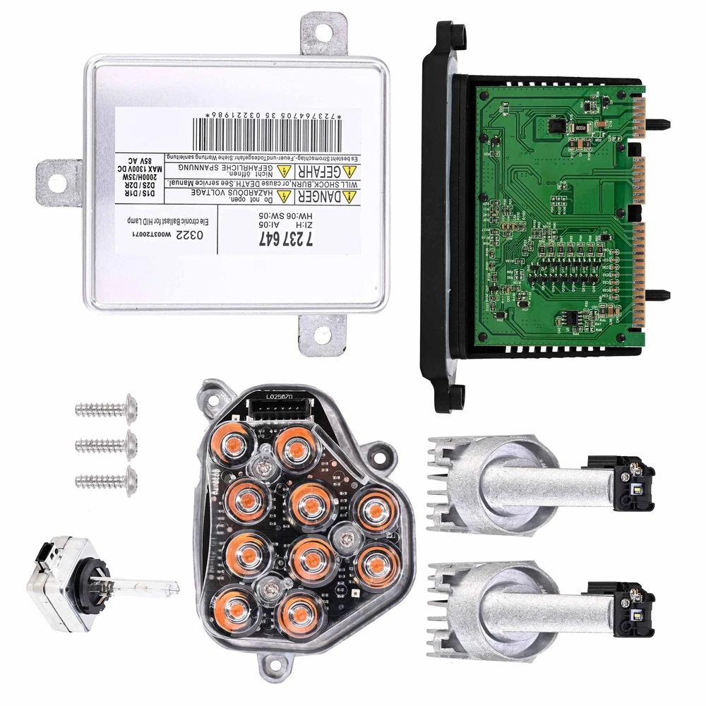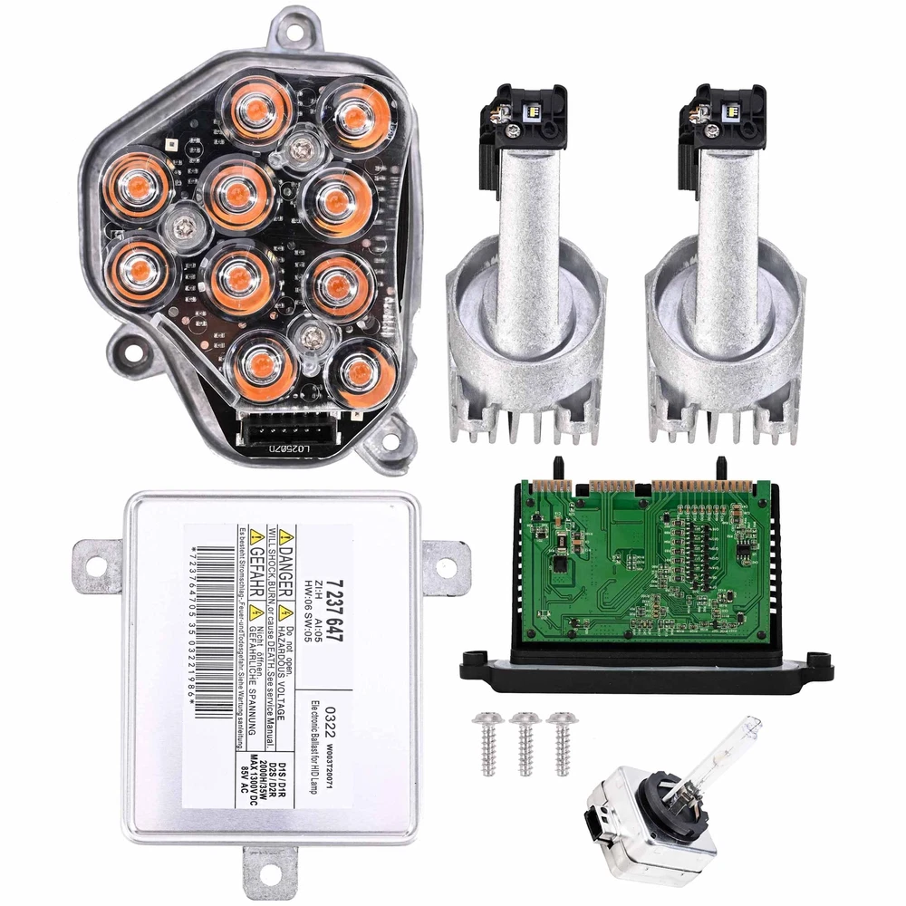 Specification: Condition: New & High quality Package You Will Receive: One brand new complete kit for passenger (right) side xenon headlight. The kit includes all shown units: Xenon ballast (pn: 63-11-7-318-327) - 1pc. Control module (pn: 63-11-7-316-217) - 1pc. Right side turn signal diode (pn: 63-11-7-271-900) - 1pc. Angel lights (pn: 63-12-7-262-731) - 2pcs. Xenon D1S bulb (pn: 63-21-7-217-509) - 1pc. Vehicle Fitment: Fit For Fits xenon headlights of: 2011-2013 BMW 528i 2012-2013 BMW 528i xDrive 2011-2013 BMW 535i xDrive 2011-2013 BMW 550i xDrive 2012-2013 BMW ActiveHybrid 5 2013 BMW M5 Note: Please check the picture and the part number carefully to make sure that you bought the right part for your car.The only way to be 100% sure that the part will fit your vehicle is to check yourpart,You can also email us before purchasing,we will check for you and reply soon within 24 hours.