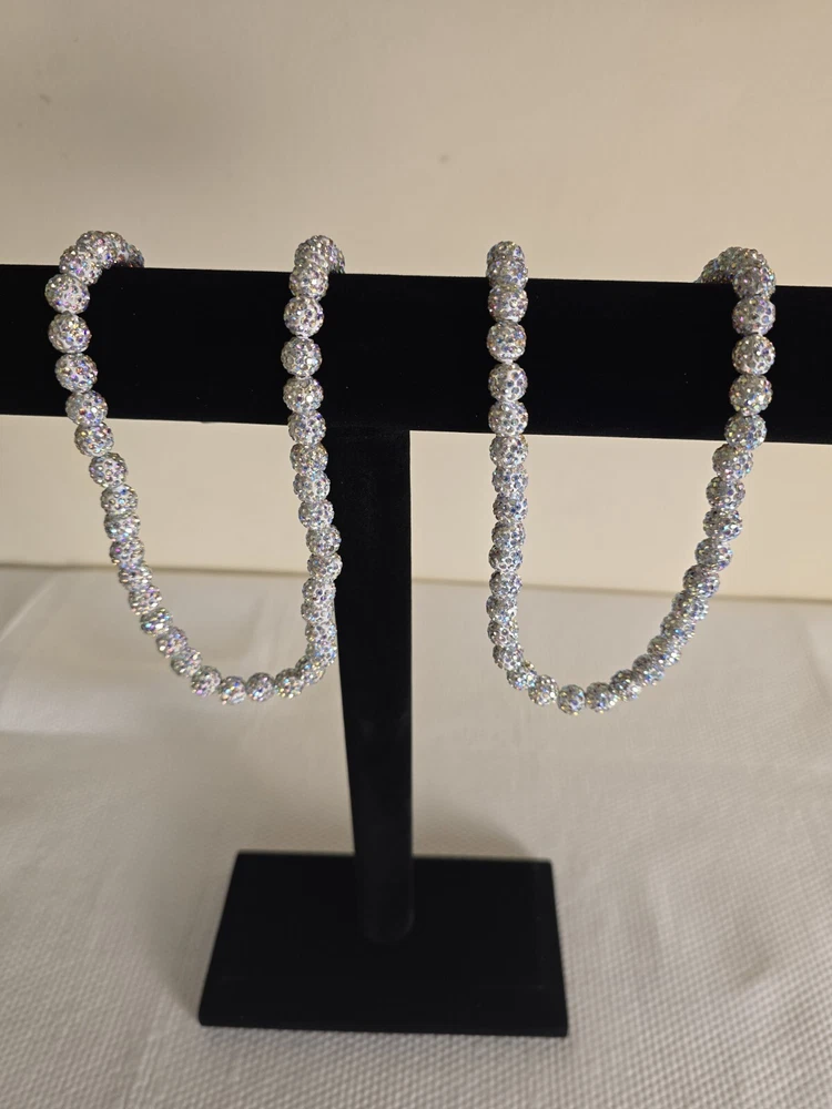 This stunning silver tone necklace is perfect for any occasion. The rhinestone design adds a touch of glamour and the butterfly closure ensures a secure fit. Measuring 8 inches in length, this necklace is made of stainless steel and features lab-created white crystals in a round shape. The prong setting style adds to the elegance of this piece. The necklace is eye clean and has a good cut grade. It comes in a unit quantity of 2 and is ideal for necklaces. The necklace is perfect for Mother's Day, Engagement, Christmas, Wedding, Graduation, Anniversary, Father's Day, Birthday, Christening, Confirmation/Communion and features a retro, fashion and costumes, hip hop theme.
