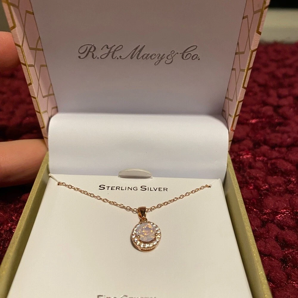 R.H.Macy & Co Sterling silver rose gold tone with fine crystal pendant necklace