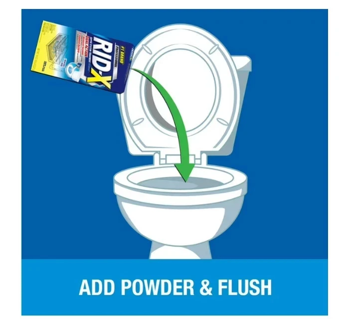 RID-X Septic Treatment, 5 Month Supply Of Powder, (49 oz.) Free Shipping RIDx Description : Protect Your Septic System with RID-X Ensure the longevity and efficiency of your septic system with the RID-X septic system treatment powder. This 49 oz. pack is designed to prevent clogs before they become a problem, safeguarding your pipes and septic systems. Trusted by professionals, it is a natural and safe solution that is compatible with most septic systems. Why Choose RID-X Septic System Treatment? The RID-X septic tank treatment is your best defense against septic backups. It features a concentrated powder formula packed with billions of natural bacteria and advanced enzymes. These components work immediately to break down solid organic waste, helping to maintain a healthy balance of septic bacteria. RID-X ensures a free-flowing septic system, saving you from the stress and expense of dealing with backups. Key Specifications: Box contains 49 oz. Safe for all pipes and septic tanks Convenient and easy to use - just add to toilet and flush Effectively breaks down waste to prevent septic back up Assists in maintaining a free-flowing septic system Product Highlights: Size / Count : Box contains 49 oz. Form : Powder Certifications and Claims : Effectively breaks down organic household waste like proteins, paper, oils, grease, and detergent Septic Safe : Yes Allergens / Warnings : KEEP OUT OF REACH OF CHILDREN. CAUTION: Contains bacterial spores and enzymes. May cause eye irritation. Avoid contact with eyes. Avoid breathing dusts. Individuals having known allergies, particularly to enzymes, as well as those with respiratory disease or disorders, should avoid contact with this product. Wash hands thoroughly after use. First Aid: If in eyes, immediately rinse eyes with water. Remove any contact lenses and continue rinsing eyes for at least fifteen minutes. If irritation develops, get medical attention. If inhaled, move to fresh air. If irritation develops, get medical attention. Use Instructions : Add to toilet and flush Customer Satisfaction Guaranteed Your satisfaction is our top priority! We're committed to providing a smooth and positive shopping experience. If you have any questions or concerns, please don't hesitate to reach out? we're here to help. Your issue will be resolved quickly and fairly. Thank you for shopping with us! FREE SHIPPING! We invite you to place your order now to take advantage of our fast and free delivery service. Satisfaction guaranteed.
