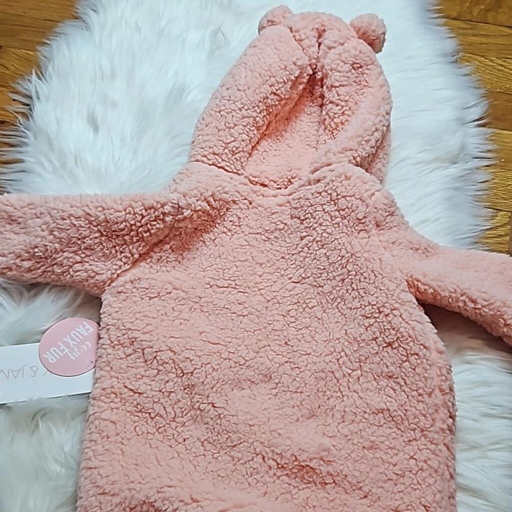 New with tag baby girls size 6 months Pink Bear-Ear Hooded Teddy bear sherpa Footie jumpsuit snowsuit pram suit bunting