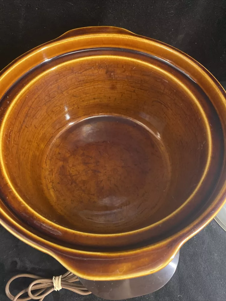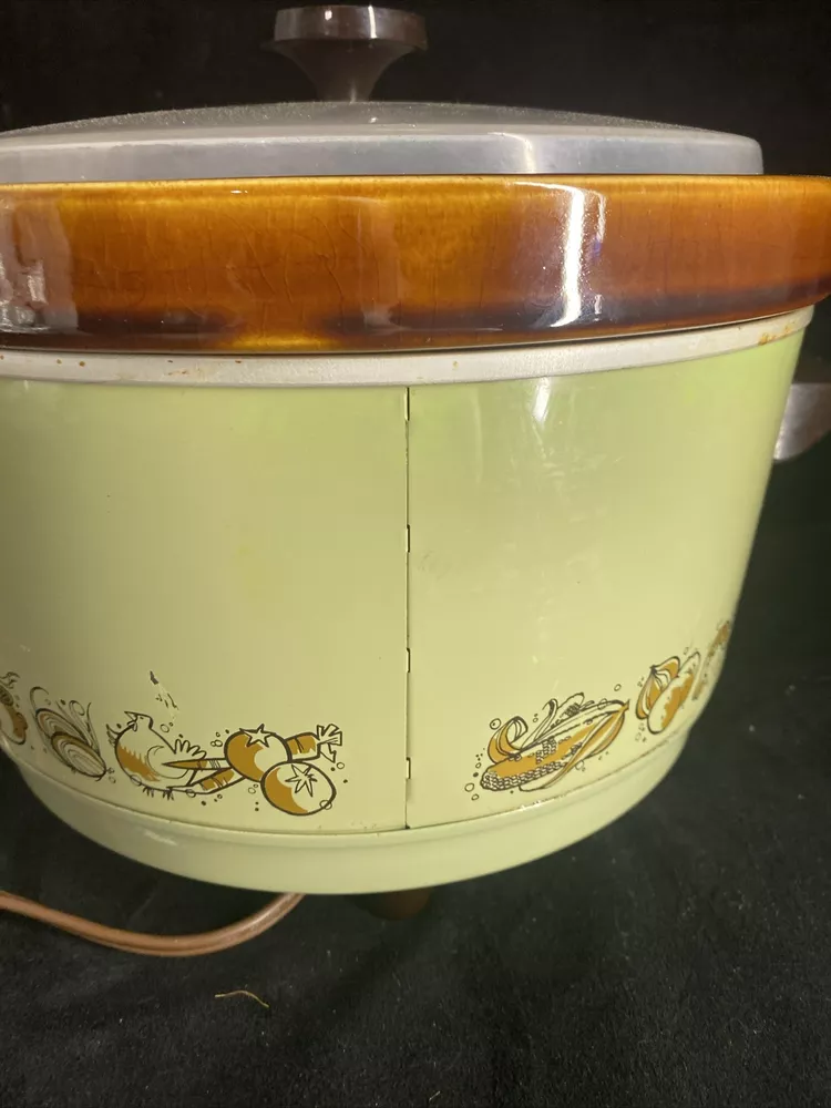 This RIVAL 3350/1 slow cooker is the perfect addition to your kitchen for easy and convenient cooking. With a 5 qt capacity, it is perfect for cooking any meal, from stews to soups. The stoneware material and glossy finish give it a sleek and modern look that will fit in with any kitchen decor. The electric power source and 120 V voltage make it easy to use, and the two number of settings/programs ensure that your meal is cooked to perfection. This set includes a pot, lid, and base for easy and complete cooking. Upgrade your cooking game with this RIVAL slow cooker today! Has some scratches/ wear/ staining to finish. Lid is hazy & missing logo disc on handle. Has a small chip on bottom of crock. Shown in photos. Works great.