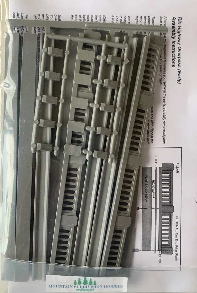 EVERY PAID ORDER gets a $5.00 coupon code toward your next order! Mountain Subdivision Hobbies modelrrsupply Rix #101 HO Scale 50' Early Style Highway Bridge (kit) Thanks for choosing Mountain Subdivision Hobbies Supplying modelers with everything you need from premium model railroad manufacturers. RIX Products Check our feedback! Need more Model Railroad Goods? We carry many lines! Check out my other items ! The Rix Highway Overpass for HO scale is modeled after the bridges built during the 1930's and 1940's to span over railroad tracks. This style of bridge was used all over the country and is common to most people. The Rix Highway Overpass consist of 50 foot spans which interlock together so that any length bridge can be built. Kit includes: 1 50' Bridge only. Piers not included. (See RIX #100) Dimensions: 6-7/8" x 3-7/16" Please see photo for actual product & package. One photo may show painted and assembled model as a suggestion. These are molded in plastic, require assembly and paint Questions, Special orders, Inventory requests: Please contact us using eBay's message system. Your shipping address : IMPORTANT!! Please confirm your shipping address is correct before making payment. You know where you live, we don't! eBay does not allow us to change an address after payment is made. If you ask us to change address, it will require us to cancel your order, ask you to correct your address and redo order. Combined Shipping: International Due to eBay's new policies, they require us to require immediate payment on your purchase. PLEASE use the eBay shopping cart - it may save you money! In the event eBay overcharges you for shipping, we will send a refund for the correction. Combined Shipping Discounts: USA Due to eBay's new policies, they require us to require immediate payment on your purchase. PLEASE use the eBay shopping cart - it may save you money! If we issue a credit for overpayment of shipping, we may deduct a portion of the overpayment to cover eBay fees. eBay DOES NOT refund the fees we pay based on shipping charges if we issue a refund for shipping! Paid orders may be combined or ship as seperate orders with no shipping refund. USA Shipping: We ship using USPS First Class, Parcel Post, Priority Mail, and occasionally FedEX. We may upgrade your shipping method at our discretion. Tracking is provided. Orders over $750 will require a signature per Paypal rules. International Shipping, Customs Fees, Import Taxes and Duty: We ship USPS First Class International and Priority Mail. It's your choice! There is limited or no tracking on FCI or Flat Rate Priority Shipping. Allow two to ten weeks when choosing First Class International, but it's usually far less. Please Note: Import duties, taxes, and charges are not included in the item price or shipping cost. These charges are the buyer's responsibility. Please check with your country's customs office to determine what these additional costs will be prior to bidding or buying. Don't ask us to falsify a customs form...We will not do it. Insurance: We insure all International shipments and some domestic shipments. Our insurance carrier requires a 20 day domestic (USA) and 40 day International waiting period before we file a claim. You agree to wait the required time and agree to complete a online affidavit for the insurance company if we file a claim for your lost or damaged shipment. Shipsaver is our carrier and they provide excellent service. Handling and Shipping time: WE SHIP FAST! All orders ship same or the next day. In the event of an issue, we will message you via eBay message system. Read our feedback page to see what our customers say about us. Please be aware USA Shipping Holidays may affect International Shipments. Sales Tax: New York Residents will be charged Sales Tax - It's the law. Returns: No returns are accepted on opened items. All items we sell are covered by Manufacturer Warranty. D o not open a return case for defective items, Contact us FIRST, we'll work it out. A restocking charge of 15-20% may apply. We do not refund original shipping charges. Please review the return policy on the shipping tab. Warranty? New or Used?: Everything we sell is brand new and covered by Manufacturer's Warranty unless noted. We will assist you in the warranty process if needed. We only sell brand new items - Our items are all factory fresh! Thanks for choosing Mountain Subdivision Hobbies Supplying modelers with items from premium model railroad & DCC manufacturers since 2002