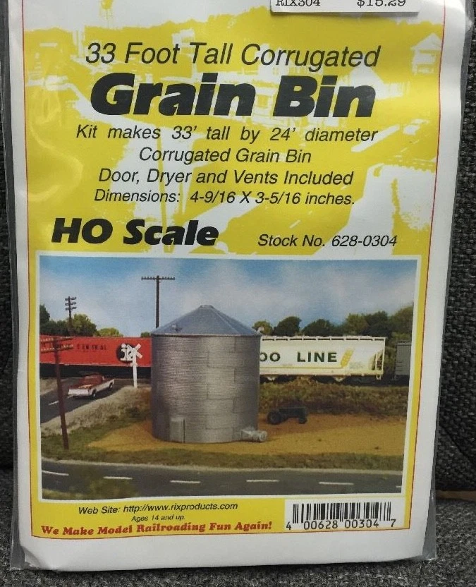 EVERY ORDER now gets a $5.00 coupon code toward a future order! (full details inside shipment) Mountain Subdivision Hobbies modelrrsupply RIX Products #304 HO 30' GRAIN BIN (KIT) The Rix 30 foot Corrugated Grain Bin for HO is designed to represent the popular style of grain bins used by many farmers and companies to store many types of commodities. The Rix Grain bin is made up of 6 band segments which form a complete band. The bands are then stacked on top of one another until they reach the height you wish. Kit includes enough band segment to produce a 30 foot tall by 24 foot diameter grain bin with door and 30 degree peaked top. Molded in a Galvanized color. Also includes roof vents and blower. Photo shows completed model on layout. This is a kit. Safely packed by our staff. __________________________________________________________________ Questions, Special orders, Inventory requests: Please contact us using eBay's message system. Your shipping address : IMPORTANT!! Please confirm your shipping address is correct before making payment. You know where you live, we don't! eBay does not allow us to change an address after payment is made. If you ask us to change address, it will require us to cancel your order, ask you to correct your address and redo order. Combined Shipping: International Due to eBay's new policies, they require us to require immediate payment on your purchase. PLEASE use the eBay shopping cart - it may save you money! In the event eBay overcharges you for shipping, we will send a refund for the correction. Combined Shipping Discounts: USA Due to eBay's new policies, they require us to require immediate payment on your purchase. PLEASE use the eBay shopping cart - it may save you money! If we issue a credit for overpayment of shipping, we may deduct a portion of the overpayment to cover eBay fees. eBay DOES NOT refund the fees we pay based on shipping charges if we issue a refund for shipping! Paid orders may be combined or ship as seperate orders with no shipping refund. USA Shipping: We ship using USPS First Class, Parcel Post, Priority Mail, and occasionally FedEX. We may upgrade your shipping method at our discretion. Tracking is provided. Orders over $750 will require a signature per Paypal rules. International Shipping, Customs Fees, Import Taxes and Duty: We ship USPS First Class International and Priority Mail. It's your choice! There is limited or no tracking on FCI or Flat Rate Priority Shipping. Allow two to ten weeks when choosing First Class International, but it's usually far less. Please Note: Import duties, taxes, and charges are not included in the item price or shipping cost. These charges are the buyer's responsibility. Please check with your country's customs office to determine what these additional costs will be prior to bidding or buying. Don't ask us to falsify a customs form...We will not do it. Insurance: We insure all International shipments and some domestic shipments. Our insurance carrier requires a 20 day domestic (USA) and 40 day International waiting period before we file a claim. You agree to wait the required time and agree to complete a online affidavit for the insurance company if we file a claim for your lost or damaged shipment. Shipsaver is our carrier and they provide excellent service. Handling and Shipping time: WE SHIP FAST! All orders ship same or the next day. In the event of an issue, we will message you via eBay message system. Read our feedback page to see what our customers say about us. Please be aware USA Shipping Holidays may affect International Shipments. Sales Tax: New York Residents will be charged Sales Tax - It's the law. Returns: No returns are accepted on opened items. All items we sell are covered by Manufacturer Warranty. D o not open a return case for defective items, Contact us FIRST, we'll work it out. A restocking charge of 15-20% may apply. We do not refund original shipping charges. Please review the return policy on the shipping tab. Warranty? New or Used?: Everything we sell is brand new and covered by Manufacturer's Warranty unless noted. We will assist you in the warranty process if needed. We only sell brand new items - Our items are all factory fresh! Thanks for choosing Mountain Subdivision Hobbies Supplying modelers with items from premium model railroad & DCC manufacturers since 2002