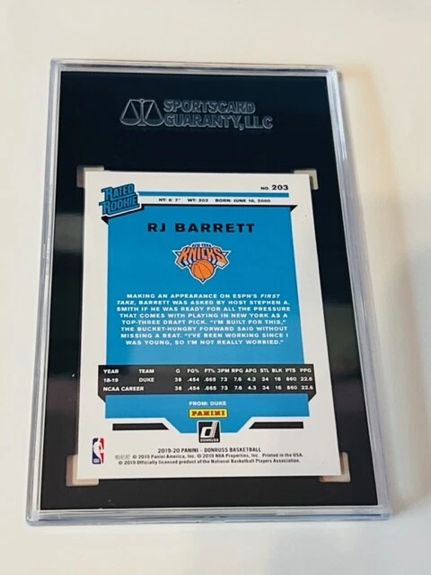 RJ Barrett Knicks Rookie RC 2019-20 Donruss Holo Optic Orange Laser SGC 9.5 sp
