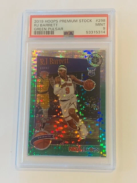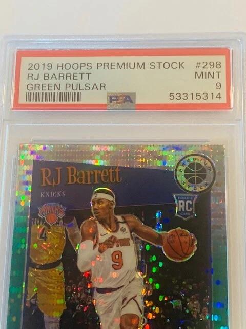 Absolutely awesome and highly collectible RARE 2019 Hoops Green Pulsar sp insert rookie RJ Barrett short print a PSA 9. See all pictures for amazing condition, size, and detail. There are absolutely no returns on graded sports cards as you know exactly what you are getting because it is professionally graded and the market for sports cards changes literally on a daily basis. Check out my store for some of the rarest vintage collectibles online from all eras. Thanks for looking and have a great day! :)