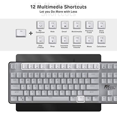 Return Policy Fast Delivery Trusted seller RK920 Full Size Mechanical Keyboard, Rainbow Backlit Gaming Keyboard, 104 Keys Wired Mechanical Keyboard with Number Pad, Tactile Brown Switch Product Description Rainbow Keyboard: 24 light modes with 5 levels of brightness and flowing speed adjustable for any cases. 12 Multimedia Shortcuts let you do more with less. Win lock function frees your worry about mistyping when gaming. Friendly Brown Switch: Compromises both tactile and low noise two supreme merits and offers you the most friendly and satisfying experience. DIY LED Mechanical Keyboard - Let’s say you want to turn on the function keys and arrow keys on, it's a piece of cake. Take a few steps and turn on /off every single lights you want. Shipping Returns Payment Shipping Shipping is FREE to all addresses other than APO/PO boxes in the lower 48 states. All our stock ships from US-based warehouses. Shipped via USPS or UPS (depending on location and package weight) Unless stated otherwise, all orders will ship within 24-72 hours of your payment being processed. Check our feedback to see the great reviews of FAST shipping we offer. Returns Seller does not accept returns Payment We currently accept payment via eBay managed payments only. Once payment is cleared, we will dispatch your shipment within 1-3 business days. Please refer to the "Shipping" tab for more information regarding shipping speed to your destination.