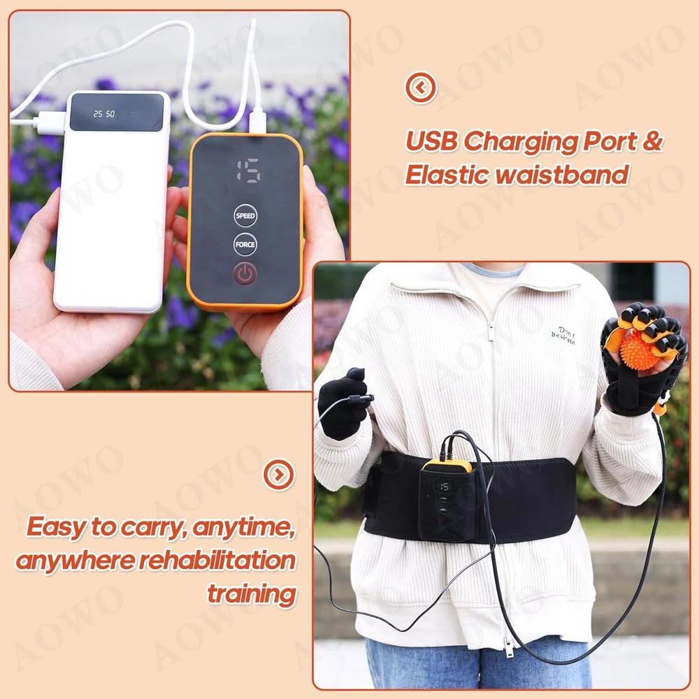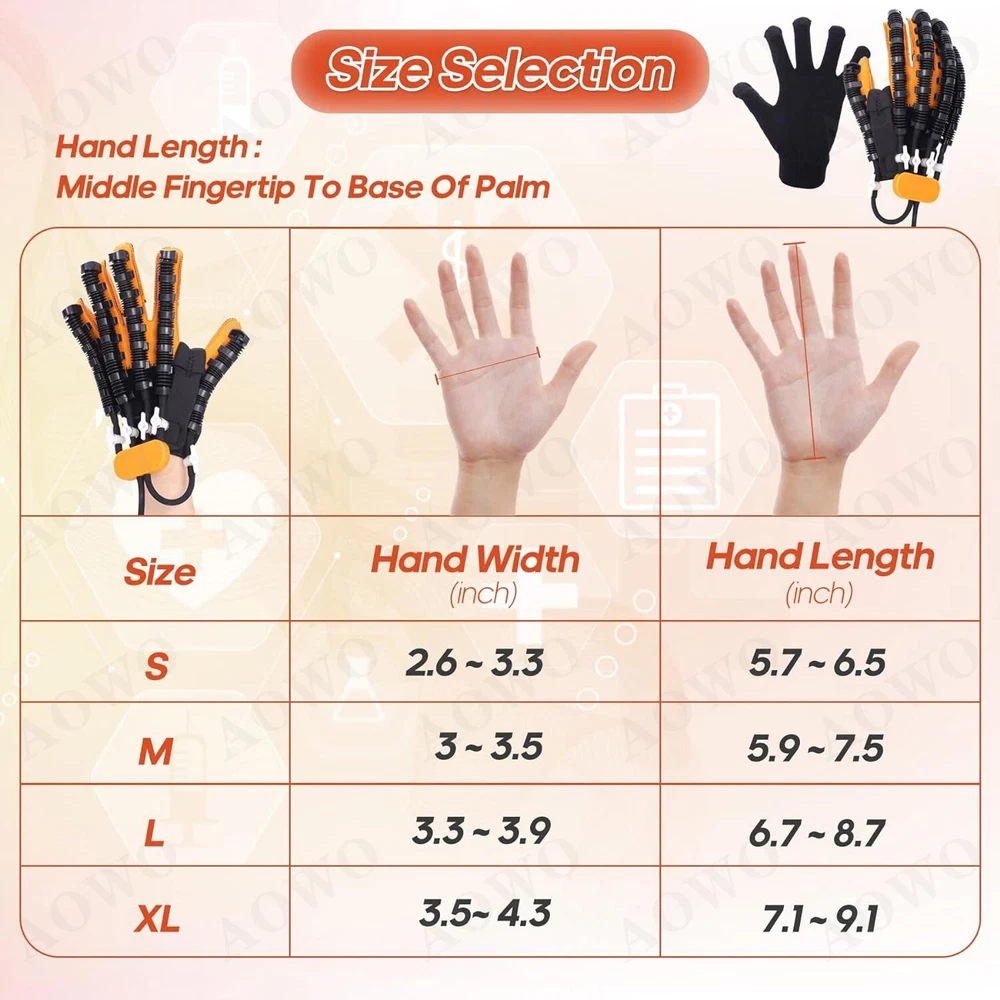 Click to play videođđ Feature: ăPortable hand trainer, rejecting ineffective trainingă Stiff hands, training to promote blood circulation and flexibility. Compact size, easy to carry and does not take up much space. Intelligent chip, stable and long-lasting work ăEasy to operate, easy for the elderly to masteră Mirror training, mirror glove for improved efficiency. Adjustable air valve for finger training. Portable belt, easy to carry ăIndependent valve switchă Train any finger to flex and extend freely with the independent switch. Turn the valve knob 90° horizontally to close the valve and open it vertically. Mirror mode for brain function remodelling. Mirror glove with synchronised movements. ăStretching movements, with hands open, train your hands. Opening movements can be executed in sync.ă Bending position grasps, tightly mimics your hand and trains your hand. Can perform fist movements in sync. Easy to operate, one button start, you can start training with five fingers, single fingers, opposite fingers, multiple fingers, mirror image, etc. Portable belt for your on-the-go needs ăUSB for easy charging and uninterrupted power supplyă Powerful power,five-speed frequency control,powerful air pump to ensure continuous output and stable operation with sufficient power ăFine stitching,joint opening,easy finger bendingă Flexible pneumatic tube, upgraded toughness, flexible and more comfortable. Velcro straps, super elastic, adjusts and fits both hands Mirror gloves, mirror training, easy to use. Individual pneumatic valves, each finger can be targeted for training Effect : Rehabilitation Robot Glove has a significant effect on hand dysfunction caused by the following symptoms: 1. stroke/cerebral hemorrhage/cerebral infarction 2. incomplete spinal cord injury 3. brain injury,hemiplegia 4. multiple sclerosis Package include: 1 x Hand Mirror Training Rehabilitation Robot Gloves (Left or right: your choice) How to use: 1. Glove interface connected to the host. 2. Fingers in turn wear to the end. 3. Fix the Velcro. 4. Fix the number of straps as needed. 5. Turn on the machine can be used. FA&Q: How long is it appropriate to use each time? The single use time should not be too long, it is recommended to control within 20 minutes. How to set the training intensity? Different users have different muscle physiological conditions and different levels of rehab and exercise, so different muscle tone levels correspond to different recommended levels, see the manual for details. What is the target group? Stroke patients, cerebral hemorrhage patients, children with hand burns, cerebral palsy-induced hand disorders, young and middle-aged people and the elderly. What are the contraindications to the use of the hand function rehabilitation training device? Before training, please confirm that the hand to be trained is not stiff, if it is stiff, please massage and warm the hand first, and wait for the hand to reach a soft state before training; please do not give it to people without behavioral awareness or young children to use it alone; such as hand sprains, traumas, bone injuries of unknown condition, people with severe osteoporosis, people with untreated fractures or those who need to brake after treatment Do not use this product without professional confirmation of availability. On Jan 6, 2025 at 19:13:29 PST, seller added the following information: