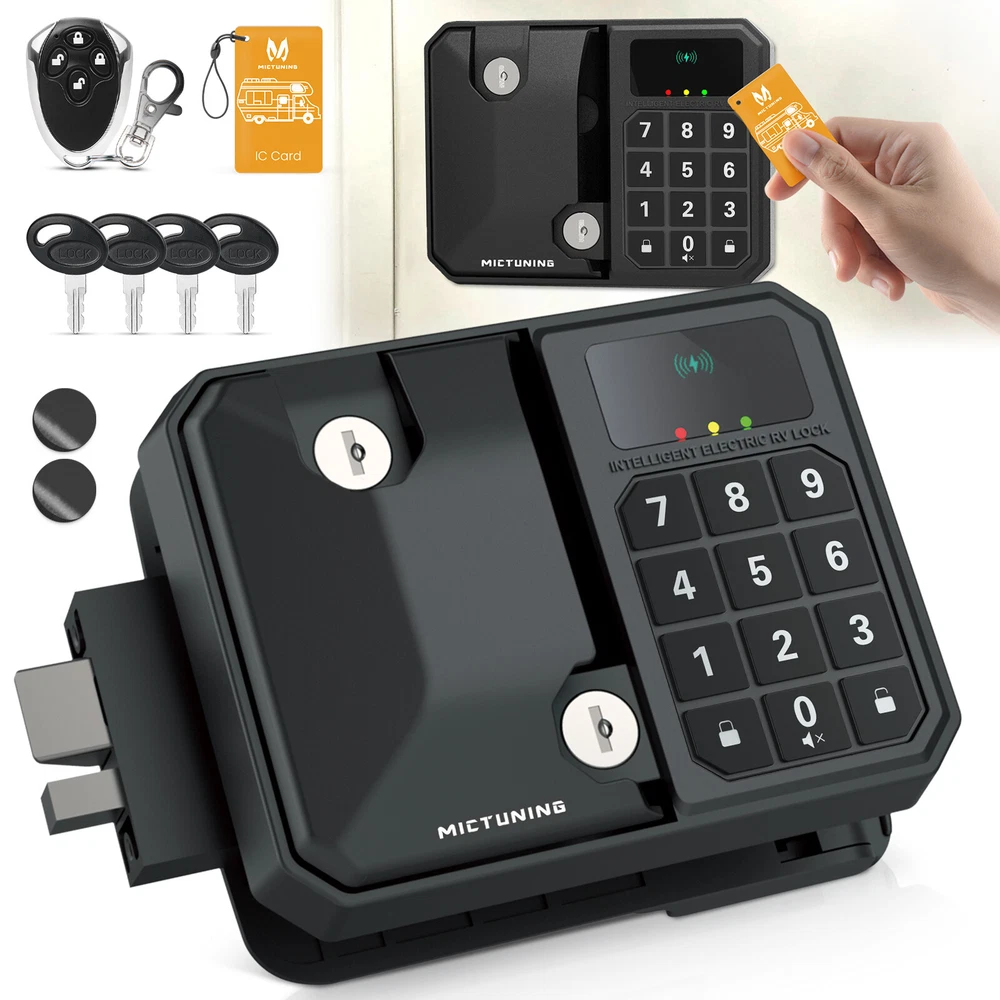 About the Item 1. Check Compatibility - Specifically designed to fit a wide range of Campers, RVs, and Trailers with an Opening Size of 3.75" x 2.75" x 1.5". Please note that this RV lock is suitable for doors with HINGES on the RIGHT SIDE ONLY. 2. Multiple Unlocking Methods - Mechanical Key, NFC Key, Key Fob & Password unlocking options. The included NFC sticker can be attached to your phone, wallet etc. The key fob has sensing range up to 50ft under ideal conditions. (Please keep the 4 mechanical keys safe, as replacements cannot be provided if lost.) 3. Enhanced Security - Safety Lock allows locking from the inside and can ONLY be opened from the outside with a Mechanical Key. Constructed with heavy-duty steel & zinc alloy, it features IK10 Impact Protection, IP65 Waterproof & V2 Flame RL100 RV Keyless Entry Door Lock LED Keypad Password Remote 4 Mechanical Key Set MICTUNING RV Keyless Entry Door Lock, Trailer Entry Latch Bolt Heavy Duty Steel RV Door Lock w/ LED Indicator Backlit Keypad 20m Wireless Remote Control Handle Latch 300 Days Standby - for RV Caravan Trailer Car Campe r 5th Wheels Bumper-Pull About the Item 1. Check Compatibility - Specifically designed to fit a wide range of Campers, RVs, and Trailers with an Opening Size of 3.75" x 2.75" x 1.5" . Please note that this RV lock is suitable for doors with HINGES on the RIGHT SIDE ONLY. 2. Multiple Unlocking Methods - Mechanical Key, NFC Key, Key Fob & Password unlocking options. The included NFC sticker can be attached to your phone, wallet etc. The key fob has sensing range up to 50ft under ideal conditions. (Please keep the 4 mechanical keys safe, as replacements cannot be provided if lost.) 3. Enhanced Security - Safety Lock allows locking from the inside and can ONLY be opened from the outside with a Mechanical Key. Constructed with heavy-duty steel & zinc alloy, it features IK10 Impact Protection, IP65 Waterproof & V2 Flame Retardancy. 4. Sleep Mode - Don't let button or unlocking noises disturb your sleep. Simply long-press the "0" button to activate sleep mode. Pressing "0" again will deactivate sleep mode and restore normal operation. 5. Green/Yellow/Red Indicators - Stay informed with the intuitive LED indicators. A green light confirms successful unlocking, a yellow light indicates low battery power, and a red light alerts you to an incorrect password entry. With an approx. 300 days standby time, you won't have to change batteries often. 6. Satisfaction Defender: Buy with confidence, We stand behind our products all the time, 30 days Money Back/Replacement, Worry-free 24-month Warranty, Within 24 Hours Friendly Response,Lifetime Customer Support (🔑NOTES: Login your account - Choose Your orders - Find the order ID - Click Contact seller) Description Locking & unlocking your door has never been easier with MICTUNING RL100 RV Door Lock - Mechanical Key, NFC Key, Key Fob, or Password – you name it, we've got it! Safety is our top priority, and our lock is equipped with enhanced security features to keep your belongings secure. Worried about noisy interruptions during your beauty sleep? Fear not! Our lock has a nifty sleep mode that ensures you can snooze away without any disturbance. It's time to take your RV security to the next level and hit the road with peace of mind. Don't wait – get your hands on the amazing MICTUNING RL100 RV Door Lock today! Complete Packge: Door Lock x1 Key Fob x1 NFC Key Card x1 NFC Key Sticker x2 Mechanical Key x4 AA Battery x4 Set of Mounting Hardware User Manual x1 Payment Delivery details Pay attention Returns Contact us Payment We accept internet transfer, bank deposit and all major credit cards through Payoneer. If buyer want to delay the payment because of financial problem, please contact us via ebay message within 1 days. If buyers have any problem in payment, feel free to contact us or ebay customers service. Delivery details We ships to worldwide. Shipment will be triggered within 1-2 business days, only after payment is received in full. We do not offer same day or overnight delivery service at this stage. Delivery time is estimated by shipping carrier and may vary depends on the size, location, and natural environment by the time of the delivery. Please understand, we cannot guarantee delivery time and cannot be held responsible for any delay outside of our control. Please contact us for estimated delivery time. Economy shipping: We ship to Order Address Only . Please make sure your address in Payment account is matched with your shipping address before placing an order. We ship worldwide via Air-Mail, 95% of tracking number is available. Expedited shipping: Express Mail Service is available. You need to contact us about this service. Pay attention International Buyers – Please Note: Import duties, taxes and charges are not included in the item price or shipping charges. These charges are the buyer's responsibility. Please check with your country's customs office to determine what these additional costs will be prior to bidding/buying. When you receive item damaged, Defective, not as describe or wrong one, please email us pictures within 24 hours to resolve any problem better and fater: 1. All labels with clear words on the package; 2. The real goods you receive; 3. Different angles of the products and package to show the problem clearly. Returns In case the item is defective, please inform us within 30 days of receipt, we will arrange reship or refund. Buyers have to pay for the return cost and we will pay the cost for resend. Please note we do not accept International Return (For customer who purchase via Global Shipping Program) Contact us If you are unsatisfied with our item or service, please contact us before leaving any feedback. We are committed to resolve all issues in a friendly and satisfactory manner. We always reply to messages within 2 business days (off-duty at weekends). If you do not get a response from us, then please check your junk or spam mailbox.