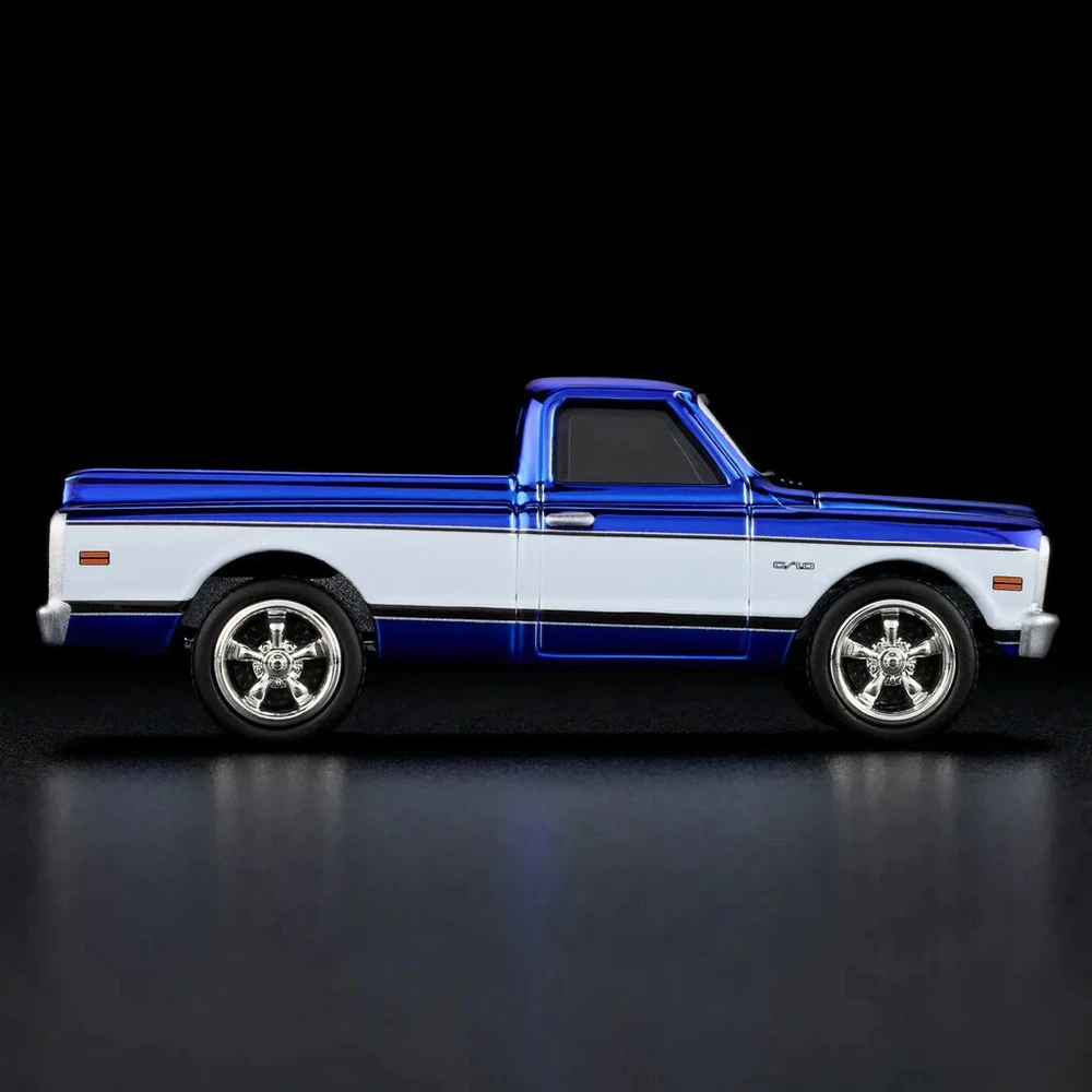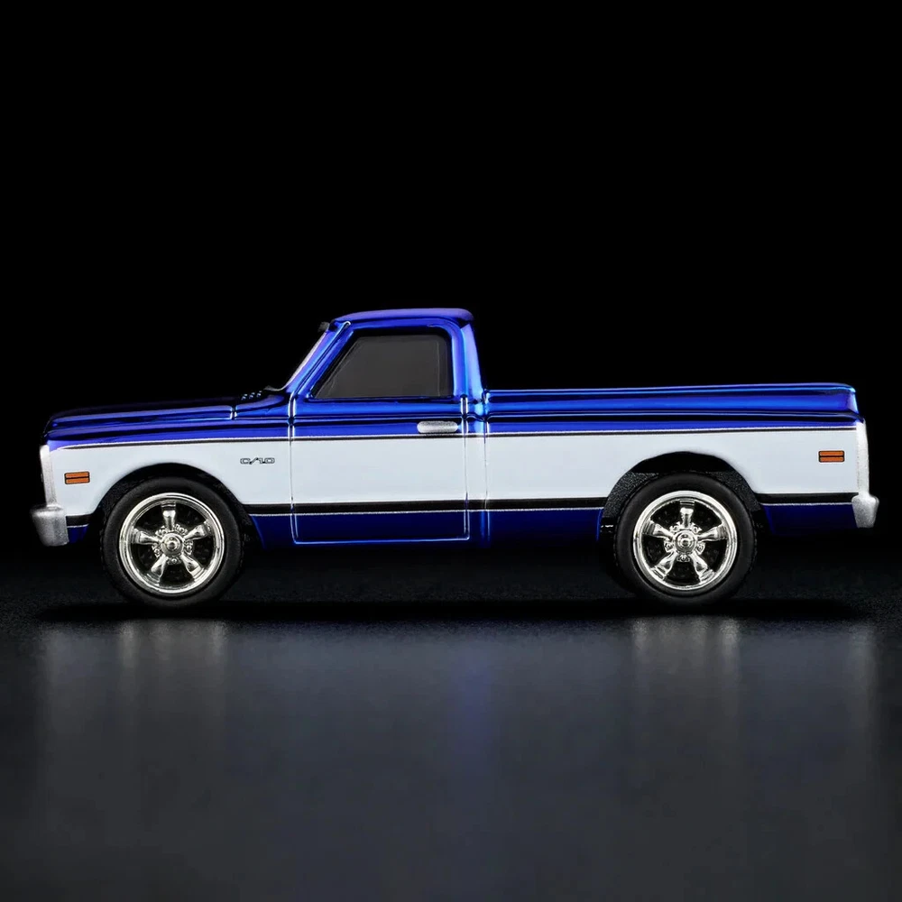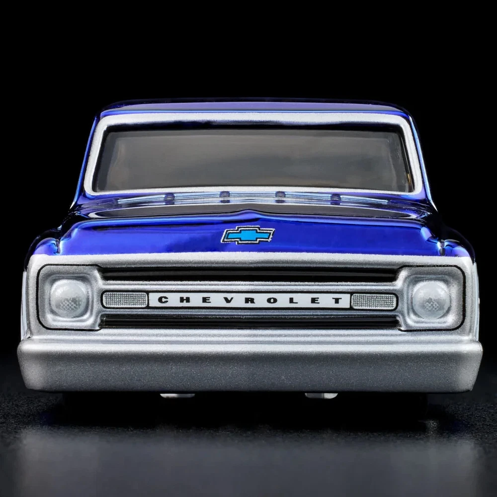 CONFIRMED PRE-ORDER **SEE BELOW FOR MORE INFORMATION** RLC Exclusive 1969 Chevy C-10 The “C” might have stood for “conventional” in the 60s, but this second-generation pickup truck is anything but. Our replica of the 1969 Chevy C-10 sports a redesigned grille with round headlights in square frames. Its silver VUM wheels enhance its classic look, and our adjustable suspension puts you in control of its display. Crank it up for street stance, or dial it down for slammed style. Features: Adjustable suspension Body Color: Spectraflame navy blue Body Type: ZAMAC Wheels: Real Riders 5-spoke wheels Base: Full-metal, chrome-plated chassis Window Color: Medium smoke-tinted Interior Color: Black Scale: 1:64 SKU#: HWF22 Packaged in a slip case with clear inner blister. ALL SALES ARE FINAL Will Not Accept the Following: Cancellations* Returns* Refund* *Cancellation Requests on Pre-Orders will result in a 25% charge