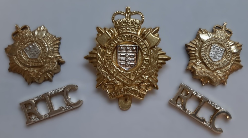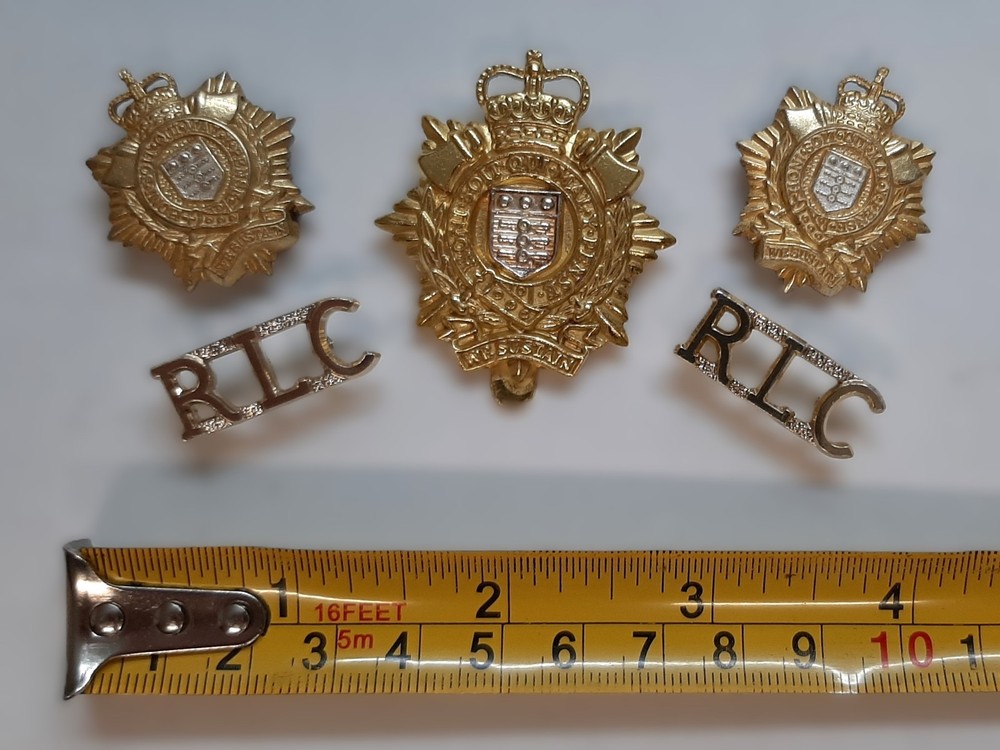 RLC Insignia Set British Army Collar Dogs Titles & Hat Badge Logistics Corps Great for customization, costumes or collectors Condition: Used Items: 1 X hat badge 2 X shoulder titles 2 X collar badges All photos are stock photos, colour shades, appearances and conditions may differ. Thanks for looking