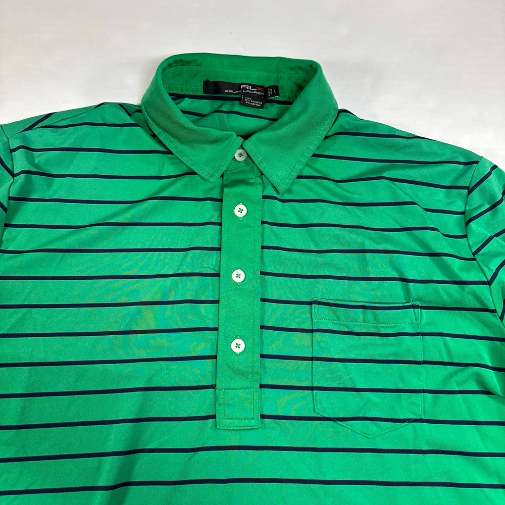 RLX Ralph Lauren Striped Golf Polo Shirt Mens Large Activewear Stretch Club Logo *polo is embroidered with the Spanish oaks club on the arm* Please refer to photos for exact measurements! Thank you for supporting our small business!