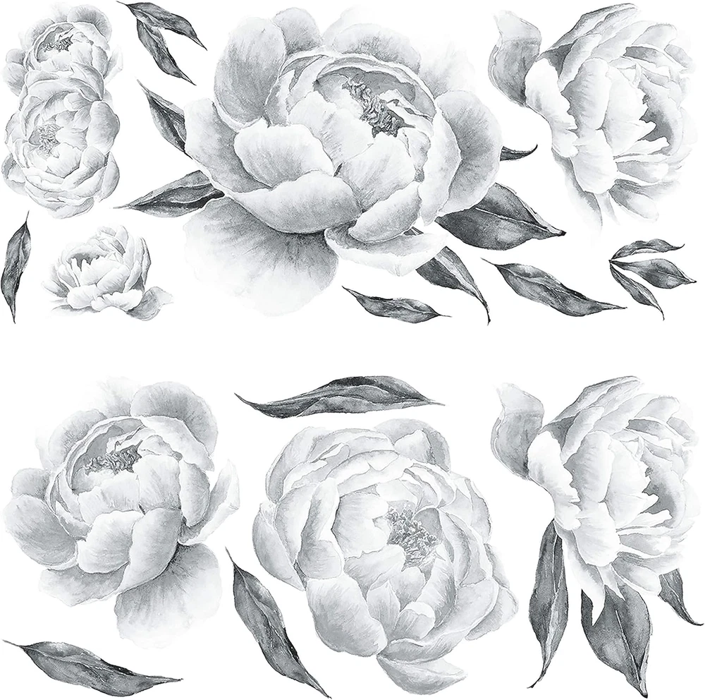 Comes with 15 wall decals; decal range size 23.38 inches x 17.11 inches to 5.71 inches x 2.06 inches Applies to any smooth, clean surface Removable and repositionable with no sticky residue left behind Reuse from one space to the next Perfect for both renters and homeowners Create a beautiful scene with Black Peonies Peel and Stick Giant Wall Decals by RoomMates, and watch your room immediately come alive. Created with high quality vinyl ensuring a professional finish, apply decals in seconds on the wall – just peel and stick. Proven 100% safe for walls, remove, reposition, and reuse as often as needed. Add this unique design to your room decor today.